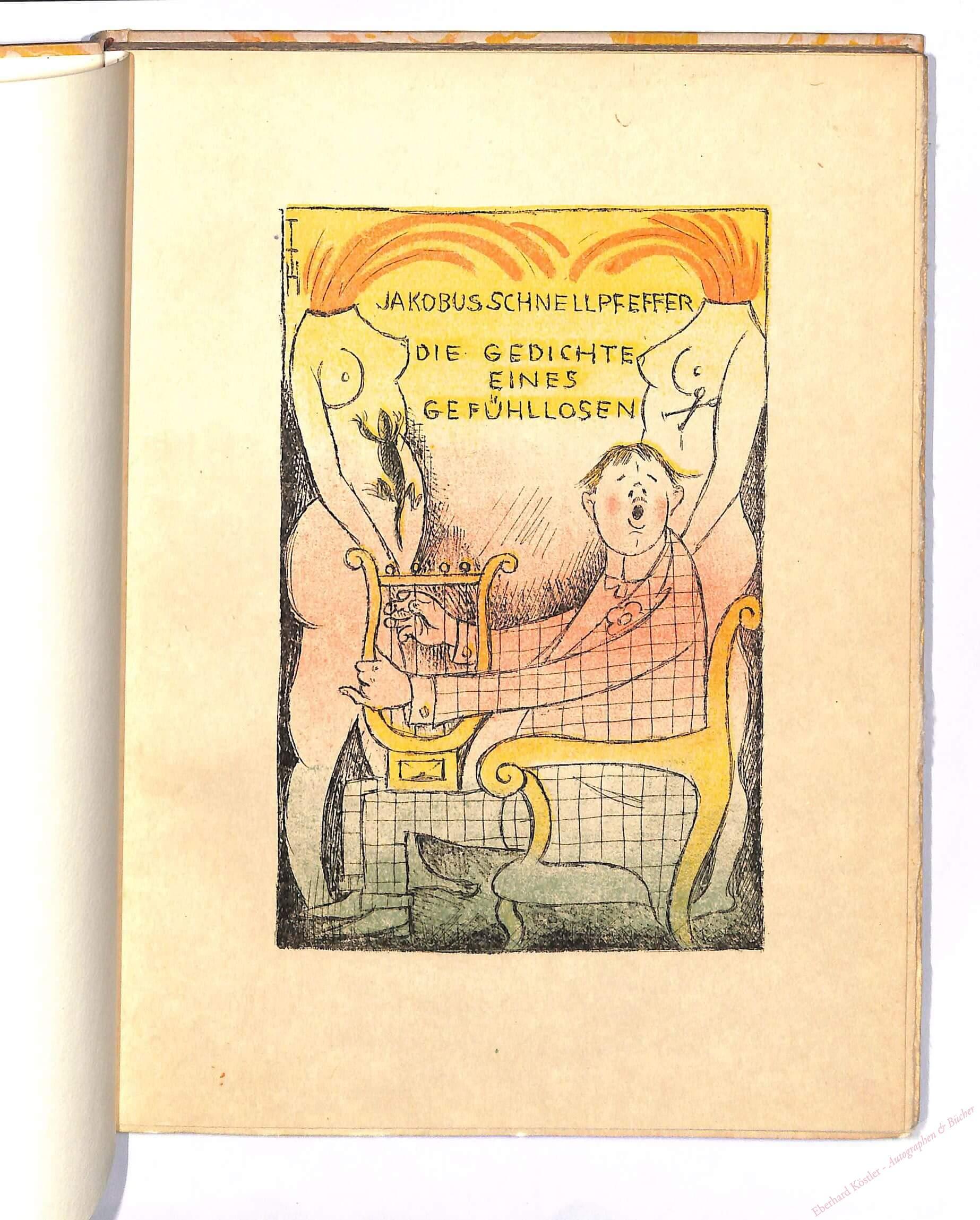 Erste illustrierte Ausgabe; erstmals 1903 ohne Bilder erschienen. – „Privatdruck für Subskribenten“ auf Kaiserlich Japan. – Nr. 383 von 400 Ex. der Gesamtaufl., im Druckvermerk von Th. Th. Heine signiert. – Hayn-G. IX, 534: „stellt den Gipfelpunkt der Bizarrerie und Gefühllosigkeit dar“. – Schauer II, 10. Klinckowstroem-Schott 41. Rodenberg 351. – Klassiker des schwarzen Humors. – Unbeschnitten, innen gut.