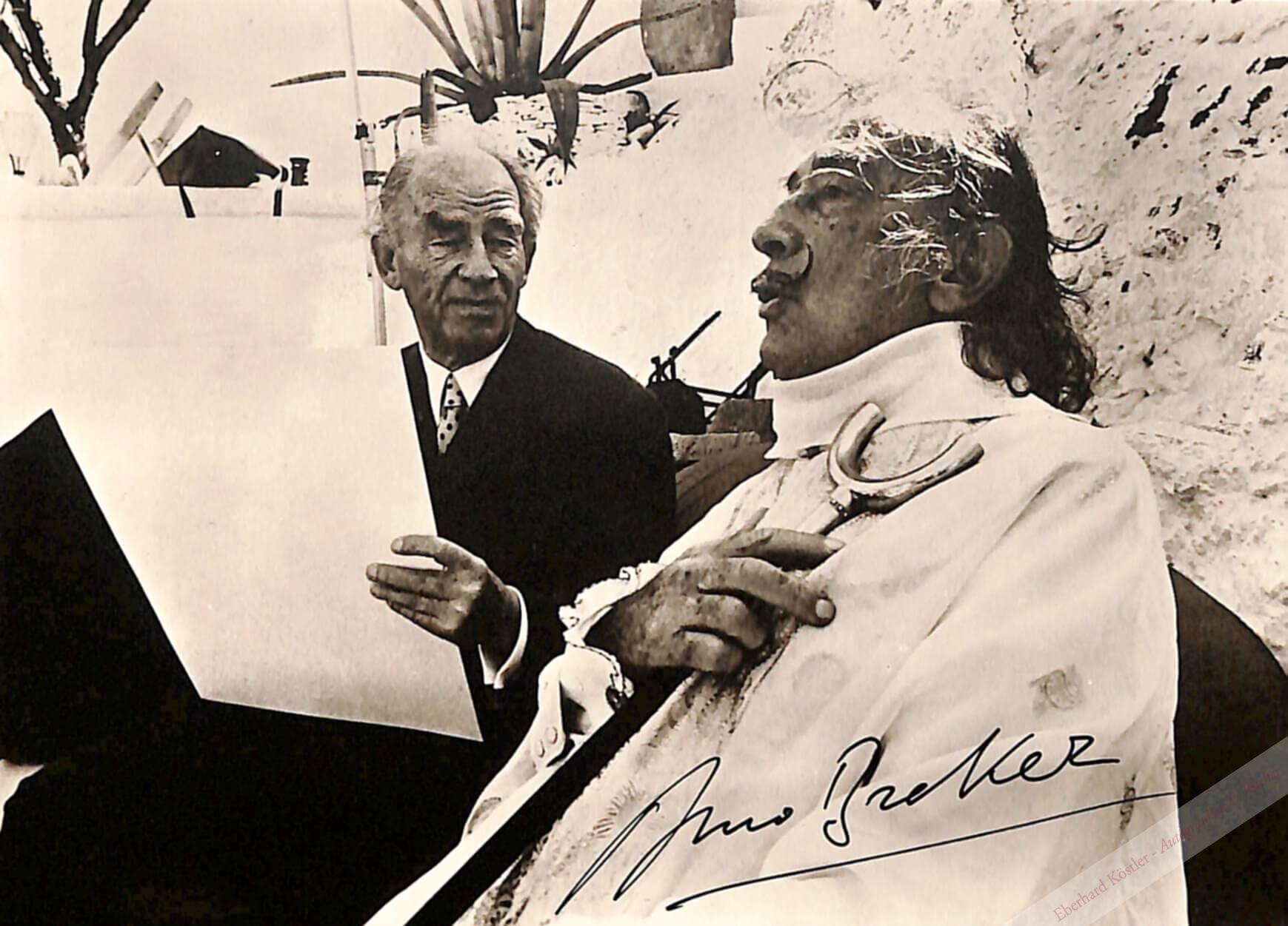I. Breker mit Skizzenblatt zeichnet Dalí, Unterschrift auf der Bildseite. – II. Die Porträtbüste, Unterschrift auf der Bildseite. – III. Dass., Unterschrift auf der Rückseite.