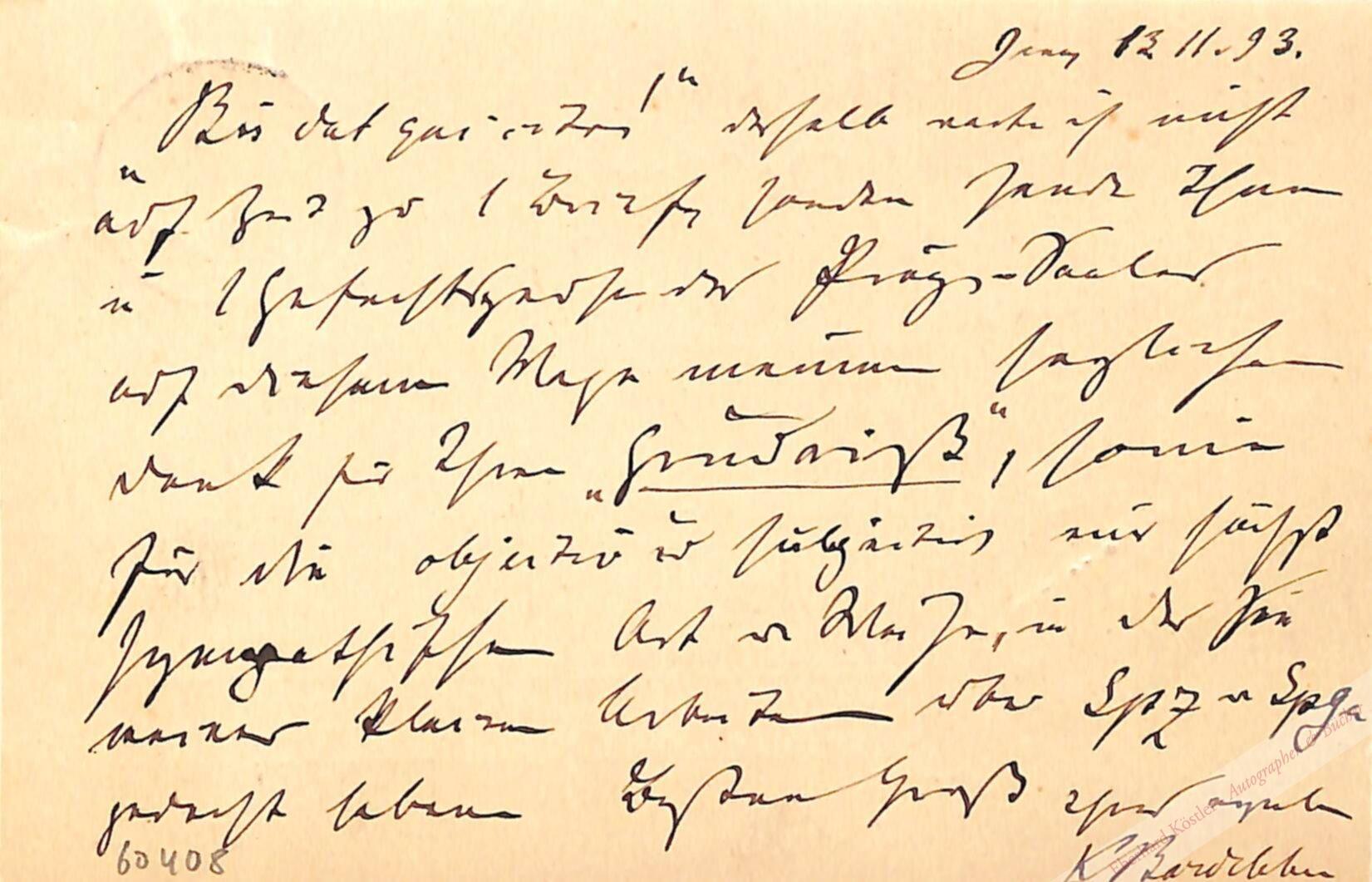 An Bernhard Rawitz in Berlin mit Dank für dessen „Grundriss der Histologie“ und Erwähnung seiner Forschungen. – Bardeleben veröffentlichte 1892 die gesammelten anatomischen Arbeiten von Johann Wolfgang von Goethe.