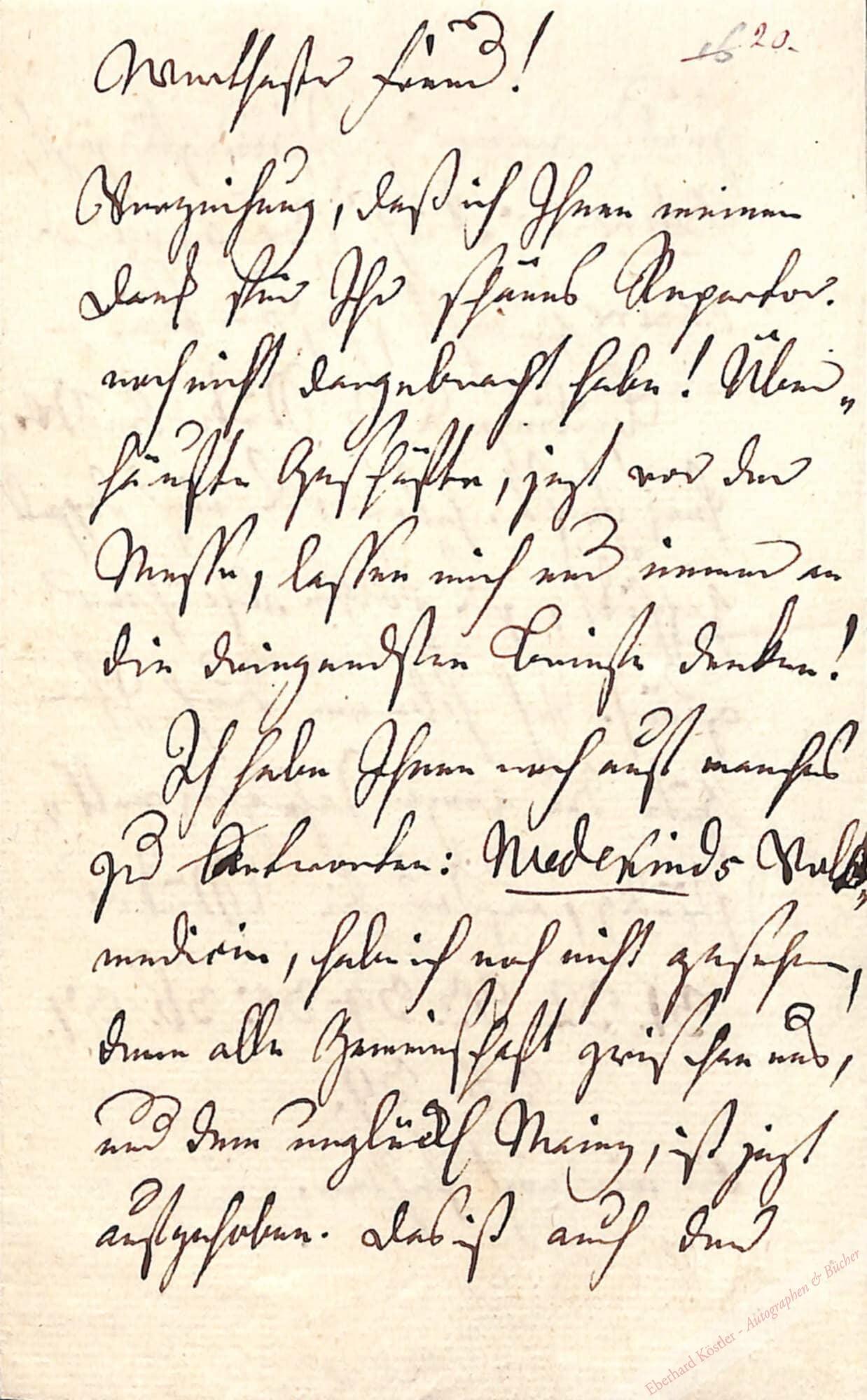 An einen Freund mit Dank für dessen Repertorium: „[…] Wedekinds Volksmedicin, habe ich noch nicht gesehen, denn alle Gemeinschaft zwischen uns, und dem unglücklichen Mainz, ist jetzt aufgehoben […]“ Georg Christian Gottlieb Wedekind (1761-1831) war Arzt und Mainzer Jakobiner. Hecker erwähnt die „Dissertatio Inauguralis Anatomico-Phisiologica Qua Demonstratur Cor Nervis Carere“ von Johann Bernhard Jakob Behrends (1792) und eine Wochenschrift. – Hecker studierte Medizin in Halle und wurde dort 1787 promoviert. Anschließend arbeitete er als praktischer Arzt in Frankenhausen. 1790 wurde er ordentlicher Professor der Medizin an der Universität Erfurt, 1805 in Berlin. Er war der veter von Justus Hecker.