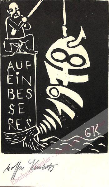 Sehr umfangreiche Sammlung von Briefen und Manuskripten. – An Wolfram Schütte, Feuilletonredakteur der “Frankfurter Rundschau“, bei Übersendung von Beiträgen, über seine Buchpläne sowie mit persönlichen Nachrichten. – (Berlin) 27. II. 1974: “[…] Ihr Brief vom 7. Jan. 1974 kam gestern! Fast zwei Monate unterwegs! Ein Skandal ohnegleichen. Ich weiss nicht, was ich zu einer solchen Sauerei sagen soll; ich hoffe nur, mein Mitleser – der nun gewiss auch dies hier studiert – wird sich beim nächsten Mal ein bißchen ranhalten und meinen Brief nicht wieder mit in den Urlaub nehmen!!! […] Ja, die Seite mit den Amerika-Stücken war erfreulich. Erfreulicher jedoch Ihre Meinung zur Geheimen Bibliothek […] ich bereite zur Zeit einen Gedichtband für den Herbst […] vor, der mich, uns, wie ich hoffe, im Herbst auf eine Lese-Reise führen wird […] Das Amerikabuch ist fast fertig […] ich wollte immer mal einen europäischen Friedhofsbaedecker schreiben […]“ – 12. V. 1974: “[…] Améry […] hat mir übrigens einen Text (in Briefform) für eine Chile-Anthologie geschickt […] Lefeu habe ich inzwischen auch gelesen: die Verzweiflung kann man schon verstehen, die Unmöglichkeit, über die Vergangenheit hinwegzukommen, das könnte niemand an Amérys Stelle […]“ – San Francisco 21. II. 1977: Er teile Schüttes Optimismus im Blick auf gesellschaftliche Veränderungen nicht. “[…] unabhängig von den letzten und laufenden Ereignissen: unsere Erfahrungen geben keine rechte Grundlage für solche Haltung […] ein bekannter Umstand wiederholt sich nämlich immer: Daß die Vorläufer und Initiatoren gesellschaftlicher Bewegungen als erste unter die von ihnen in Bewegung gesetzte Dampfwalze geraten […] Das Individuum, als ein Produkt langwieriger (und auch schmerzhafter) Differenzierung, bietet die einzige Chance sich kritisch in Bezug zur Gesellschaft zu setzen […]“ – (Berlin) 7. XII. 1977: “[…]Wie es mit der Arbeit weitergehen soll oder wird, ich habe keine Ahnung. Das ‚Englische Tagebuch‘ […] ist überarbeitet und abgeliefert, doch ist nichts an Kraft und Intention nachgewachsen, was mich zu einer neuen Arbeit veranlassen würde. Im Grunde gammle ich nur herum, lese und räume auf: kein erfreulicher Zustand […] Inwieweit das die Auswirkungen einer allgemeinen Lethargie sind, der ich mich als ‚Sohn des Volkes‘ nicht entziehen kann, ist mir ganz ungewiss […]“ – (Itzehoe) 26. X. 1979: Nach seiner Übersiedelung in die Bundesrepublik. “[…] Sie haben es geahnt, inzwischen ist es passiert, soll man es eine notwendige Operation nennen, einen Flug aus dem Kuckucksnest, einen Orts- oder einen Daseinswechel? – wenn man das wüsste […] Hier scheint übrigens seit unserem Eintreffen permanent eine erstaunlich grelle Sonne, ist der Himmel italiänisch und der Wind unaufhörlich. Die Leute rundum, insbesondere die Männer, tragen alle meine Mütze, so daß wir ziemlich doppelgängerisch wirken. Aber das dürfte sich wohl mit der Zeit geben […]“ – Erwähnt ferner u. a. Nicolas Born, Elias Canetti, Erich Fried, Erich Loest und Arno Schmidt. Beiliegend 11 von Kunert gestaltete Grußkarten und Holzschnitte. – „Scharfsinnig, am Schnittpunkt von Ich und Außenwelt, analysiert Kunert die Verirrungen des Zeitgeists, Dummheit und Überheblichkeit des Menschen. Er ist ein Unbestechlicher, der Spontanität ebenso zugetan wie der Resignation, einer, der sich schreibend an den Verhältnissen reibt, um die Welt zu erhalten.“ (DLF).
