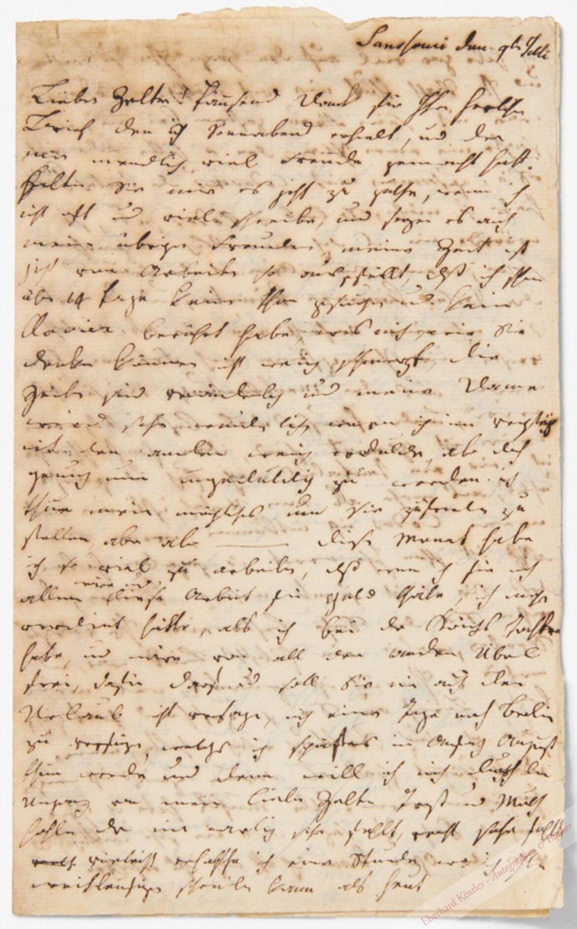 Eigenhändiger Brief mit Unterschrift „Tante Jule“. Sanssouci, 9. VII. 1795, 8°. 3 1/2 Seiten. Doppelblatt.