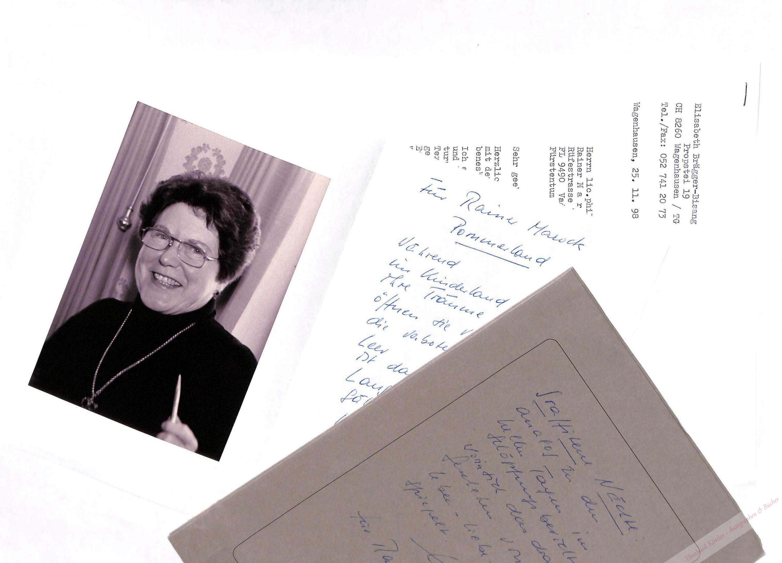 Brägger-Bisang, Elisabeth, Schriftstellerin (1931-2009).