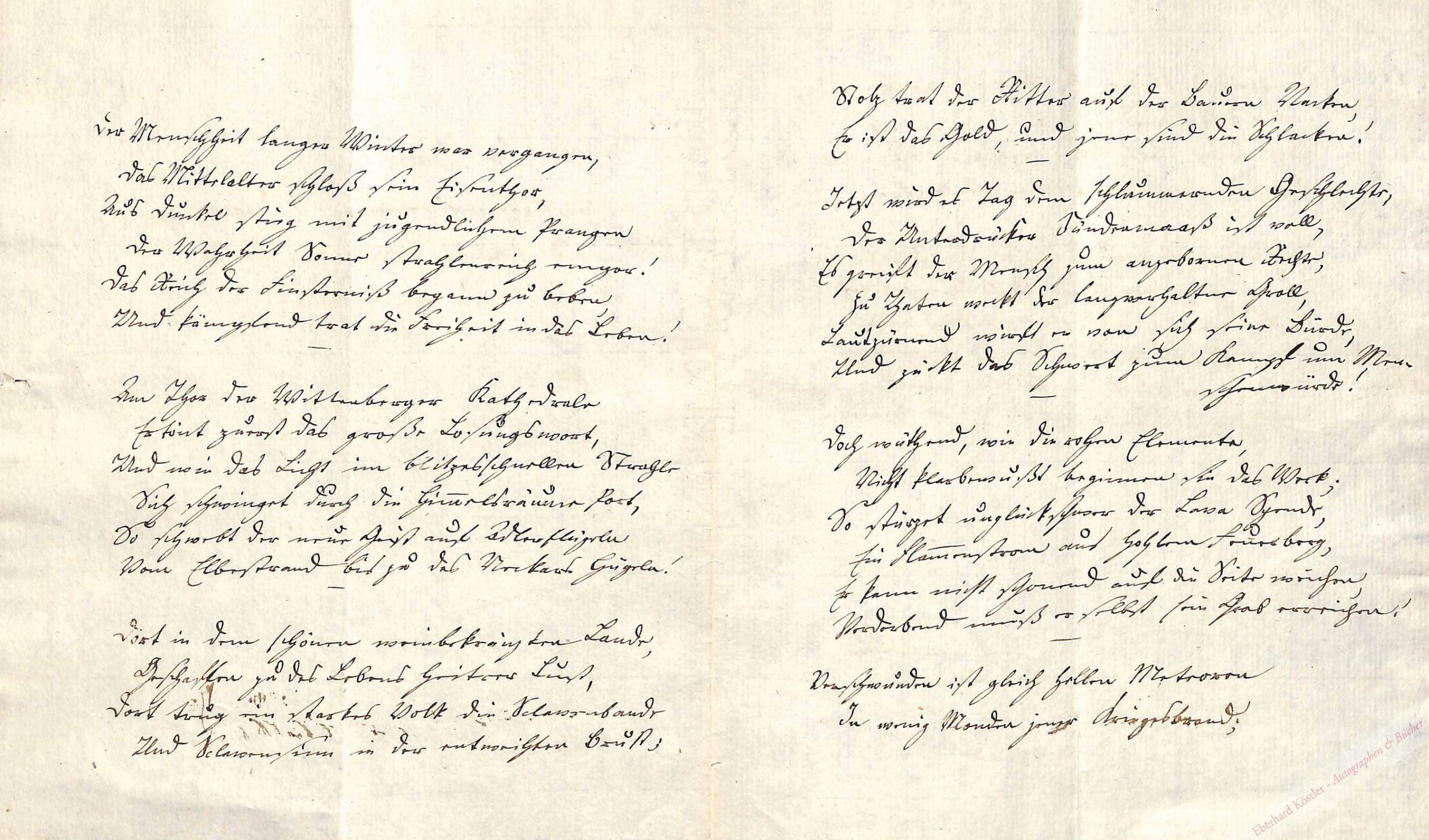 „Der Menschheit langer Winter war vergangen, | Das Mittelalter schloss sein Eisenthor, | Aus Dunkel stieg mit jugendlichem Prangen | Der Wahrheit Sonne strahlenreich empor! | Das Reich der Finsternis begann zu beben, | Und kämpfend trat die Freiheit in das Leben! …“ – Brunnow war Assessor beim Kollegium der sächsischen Landesregierung. 1822 quittierte er den Dienst, um sich der Verbreitung der Homöopathie und der Schriftstellerei zu widmen. Er veröffentlichte Dichtungen (1833), schrieb Historienliteratur und übersetzte 1824 Hahnemanns „Organon der Heilkunde“ ins Französische.