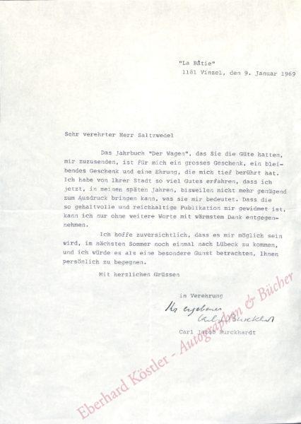 An einen Herausgeber in Lübeck mit Dank für die Zusendung eines Jahrbuchs: „Ich habe von Ihrer Stadt so viel Gutes erfahren, dass ich […] nicht mehr genügend zum Ausdruck bringen kann, was sie mir bedeutet […]“