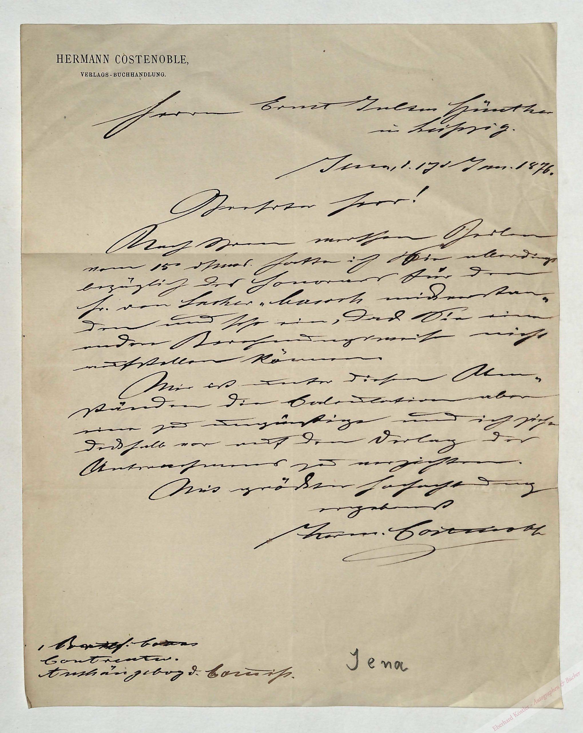 An Ernst Julius Günther in Leipzig. Verzichtet auf den Verlag eines Werkes von Sacher-Masoch.
