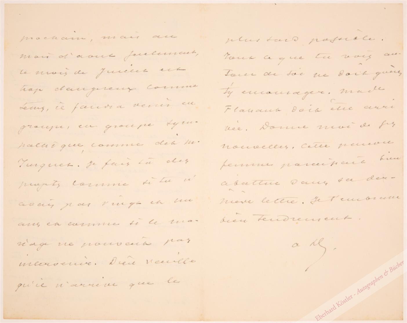 In dem ausführlichen Brief (3 Seiten) an seinen Freund Janot beschreibt Alexandre Dumas, der sich in den Alpen aufhält, begeistert den Mont Blanc und die ihn umgebenden Gebirgsketten: „[…] Le mont blanc chargé de neige, dominant tout et une succession de montagnes de diverses formes et à divers plans qui ont l’air de vagues immenses […]“ Er würde Janot gerne bei sich haben, doch er denkt, dass dieser sich langweilen würde; er solle daher in einer Gruppe kommen. „[…] Je fais là des projets comme si tu n’avais pas vingt et un ans et comme si le mariage ne pouvait pas intervenir. Dieu veuille qu’il n’arrive que le plus tard possible. Tout ce que tu vois autour de toi ne doit guère t’y encourager […]“ Janot soll ihm Bescheid geben, wenn Frau Flahaut angekommen ist, da diese in ihrem letzten Brief so niedergeschlagen wirkte. – In der Briefkarte sagt Dumas inem Freund einen Logenplatz zu.