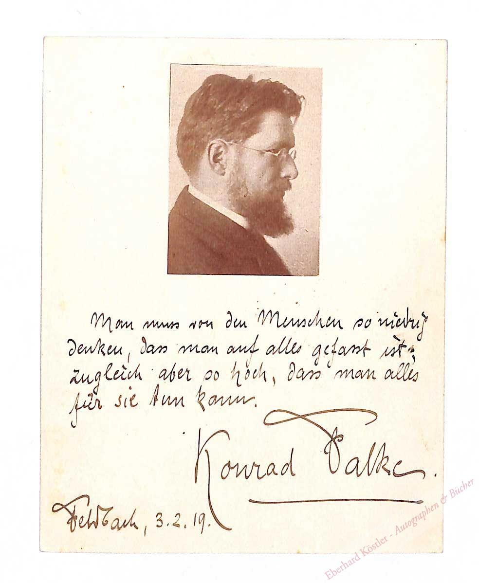 „Man muss von den Menschen so niedrig denken, dass man auf alles gafasst ist: zugleich aber so hoch, dass man alles für sie tun kann […]“. – Von 1937 bis 1940 gab Falke gemeinsam mit Thomas Mann die Exilzeitschrift „Maß und Wert“ heraus.