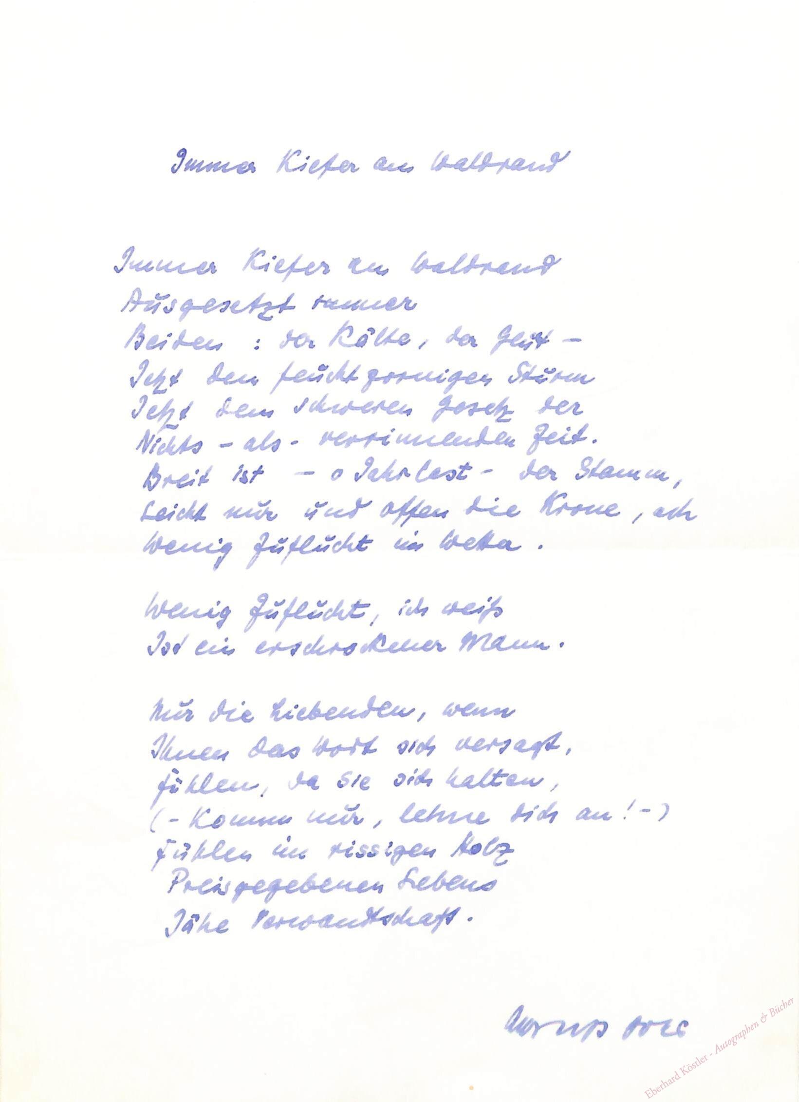 „Immer Kiefer am Waldrand | Ausgesetzt immer | Beiden: der Kälte, der Glut […]“ – Transkription liegt bei.