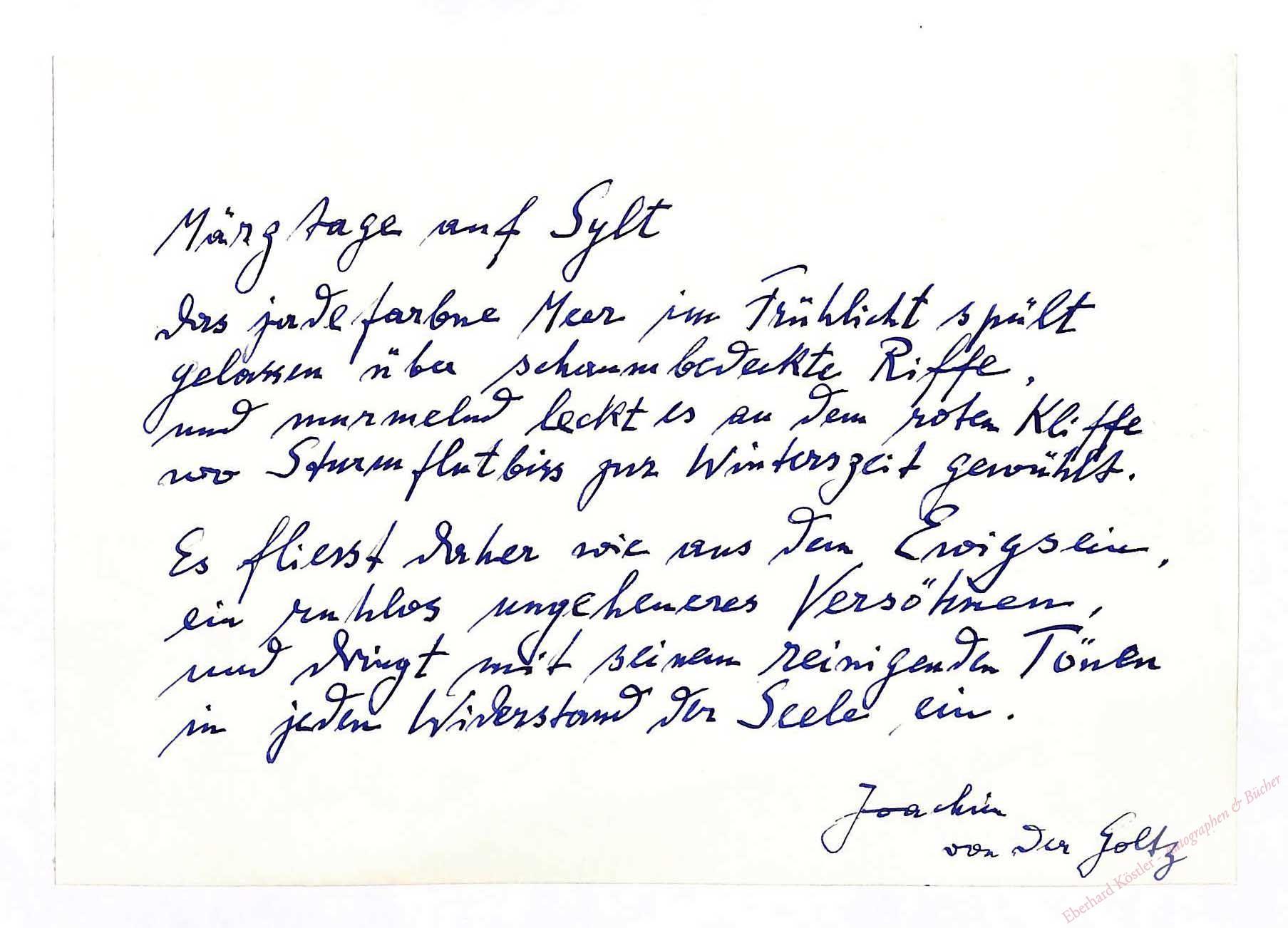 „Märztage auf Sylt || Das jadefarbne Meer im Frühlicht spült | gelassen über schaumbedeckte Riffe […]“