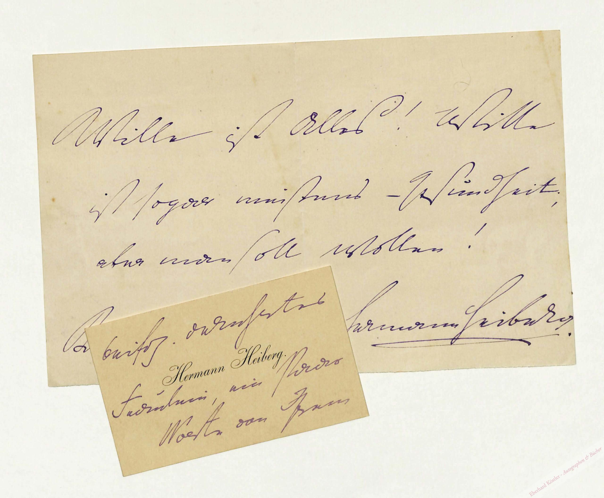 Für die Sammlerin Louise Andreis in Innsbruck: „Wille ist Alles! Wille ist sogar meistens – Gesundheit; aber man soll wollen! […]“ – Visitenkarte mit begleitendem Text.