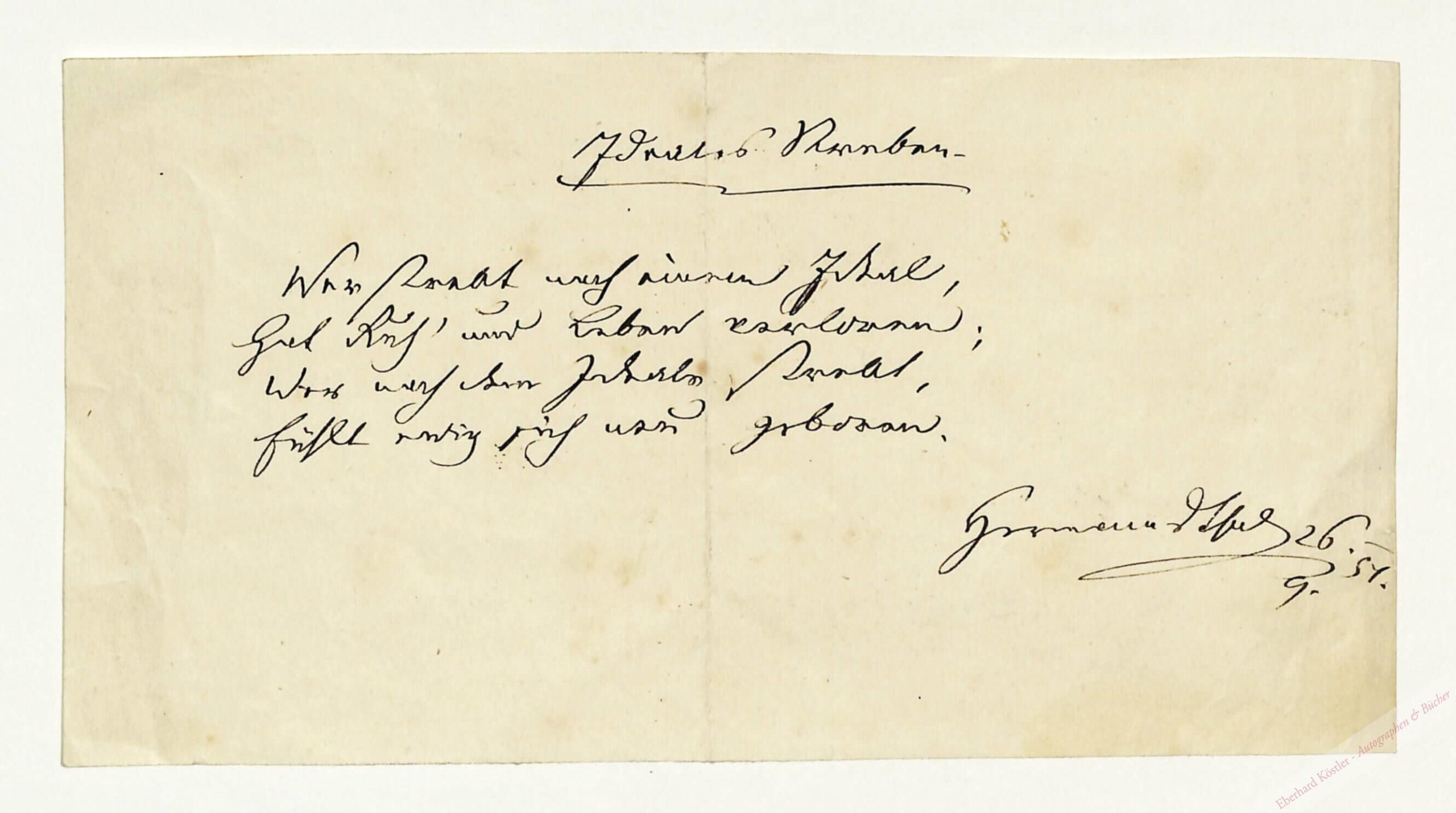 „Ideales Streben. || Wer strebt nach einem Ideal, | Hat Ruh‘ und Leben verloren; | Wer nach dem Ideale strebt, | Fühlt ewig sich neu geboren […]“ – Hermann trat nach Abschluß seines Studiums in den Staatsdienst ein und wurde 1864 als Sektionsrat des Finanzministeriums pensioniert. Er stand mit Franz Grillparzer und Friedrich Hebbel in Verbindung. „Eine Sammlung ‚Gedichte‘ erschien 1830. Von der zeitgenössischen Kritik wurden seine Gedichte wegen der Gewandtheit in Reimstellungen und Versmaßen und ihrer Empfindungen wegen gelobt. In ihrem Hang zur Beschaulichkeit können sie heute nur als mittelmäßig bezeichnet werden.“ (NDB VIII, 665).