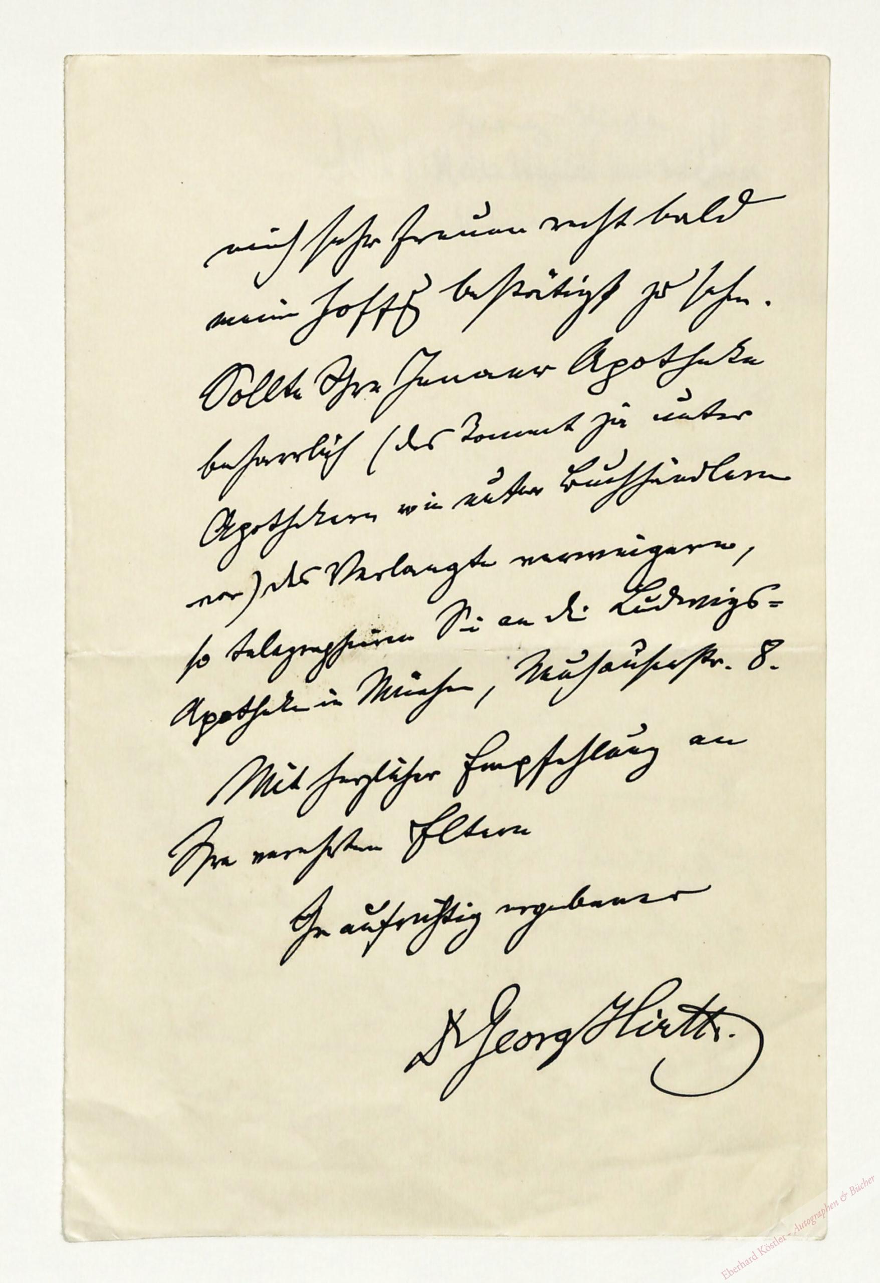 An einen Herrn mit der Hoffnung, daß das von ihm weitergegebene „Elektrolyt“ seiner Mutter Erleichterung verschafft habe und Empfehlung der Ludwigs-Apotheke in München.