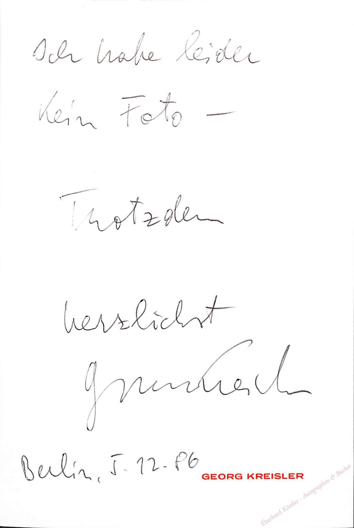 „Ich habe leider kein Foto – Trotzdem herzlichst Georg Kreisler …“