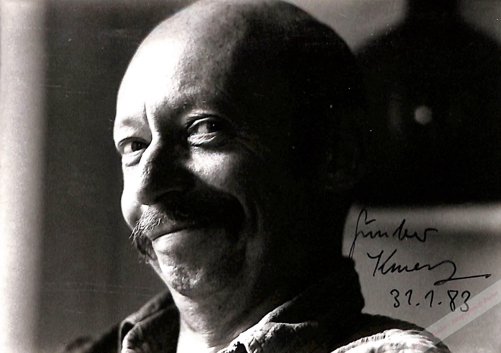 Porträtfotografie mit eigenhändiger Unterschrift auf der Bildseite sowie eigenh. Karte mit Grußwort und Unterschrift Kaisborstel, 19. II. 1982, Qu.-8°. Zus. 2 Seiten. Mit Umschlag.