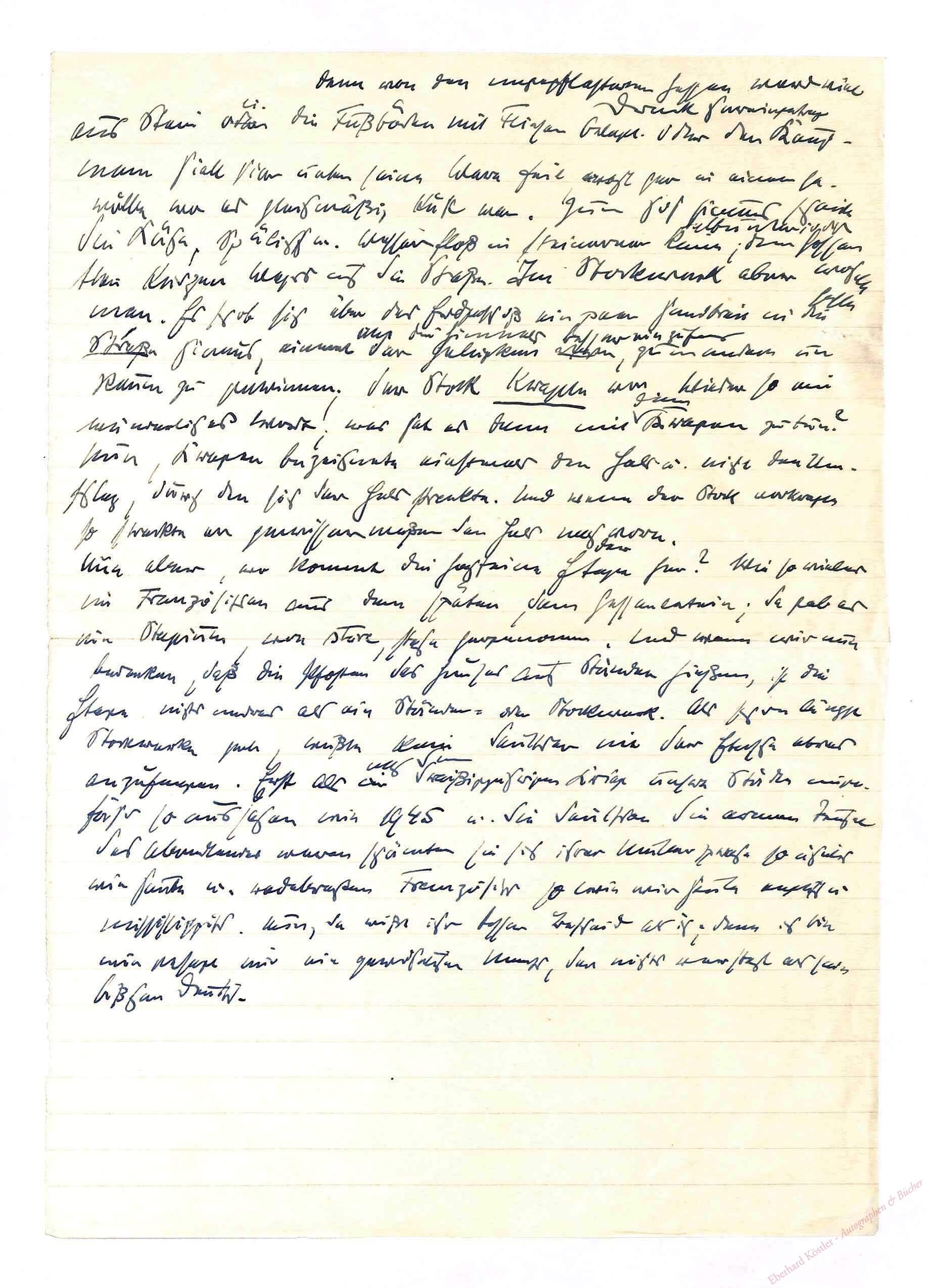 Eigenh. Manuskript (ohne Unterschrift). Ohne Ort und Jahr [Celle, ca. 1950?], Fol. 1 Seite. – Aus einem Prosawerk über den 30jährigen Krieg..