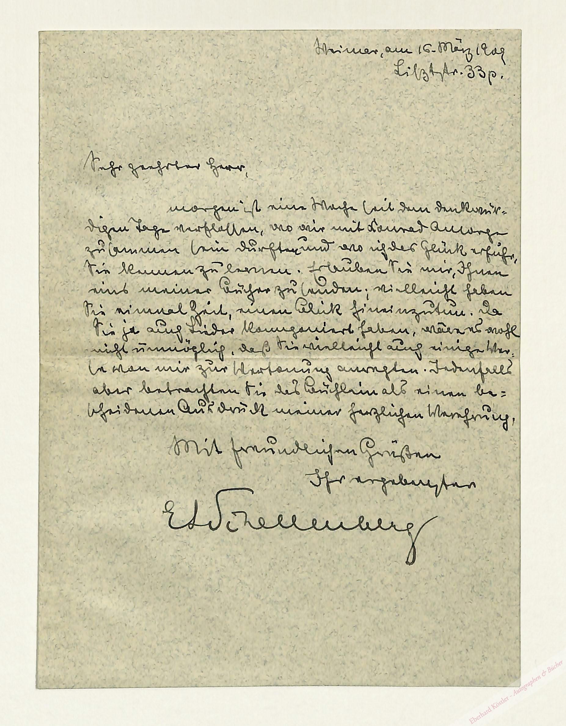 Wohl an den Kapellmeister Peter Raabe mit Übersendung eines Gedichtbandes und der Anregung, Verse daraus zu komponieren.
