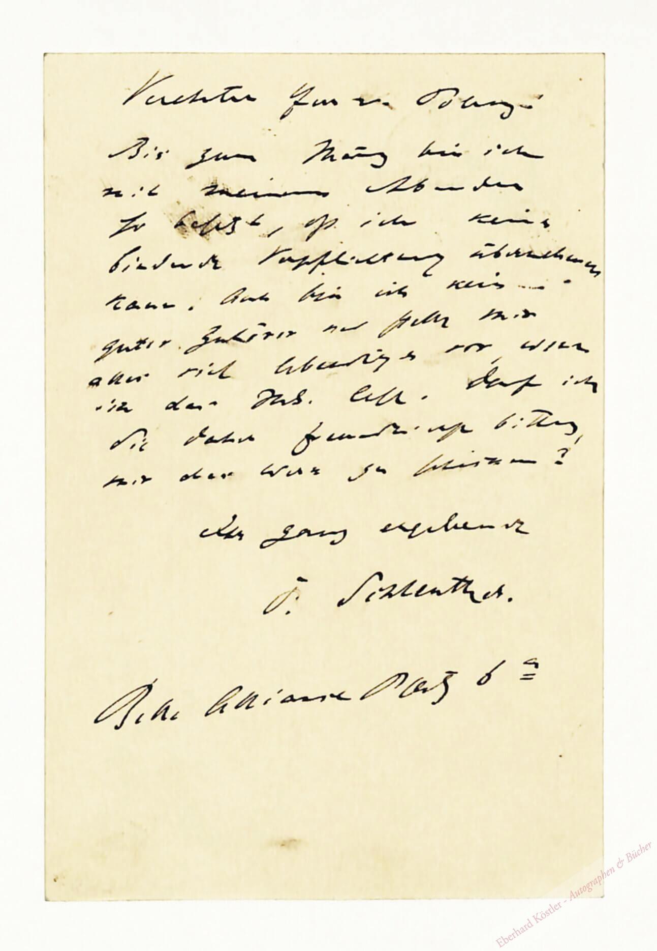 Eigenh. Postkarte mit Unterschrift Berlin, 20. II. 1894, 1 Seite. Mit Adresse.
