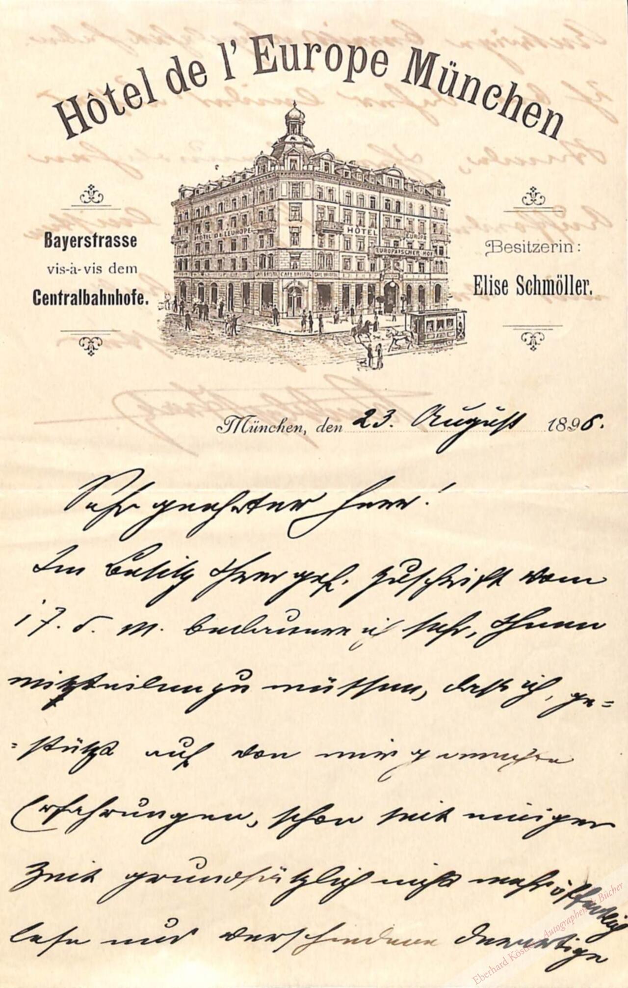 An den Schriftführer der „Litterarischen Gesellschaft“ in Halle an der Saale, dem er mitteilt, dass er „grundsätzlich nicht mehr öffentlich lese“. – Hübsche Hotelansicht.