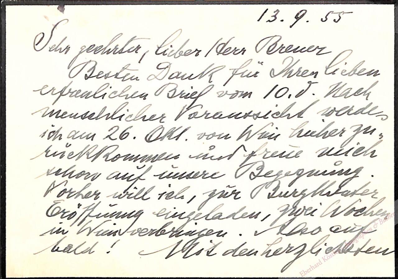 „[…] Vorher will ich, zur Burgtheater-Eröffnung eingeladen, zwei Wochen in Wien verbringen […]“