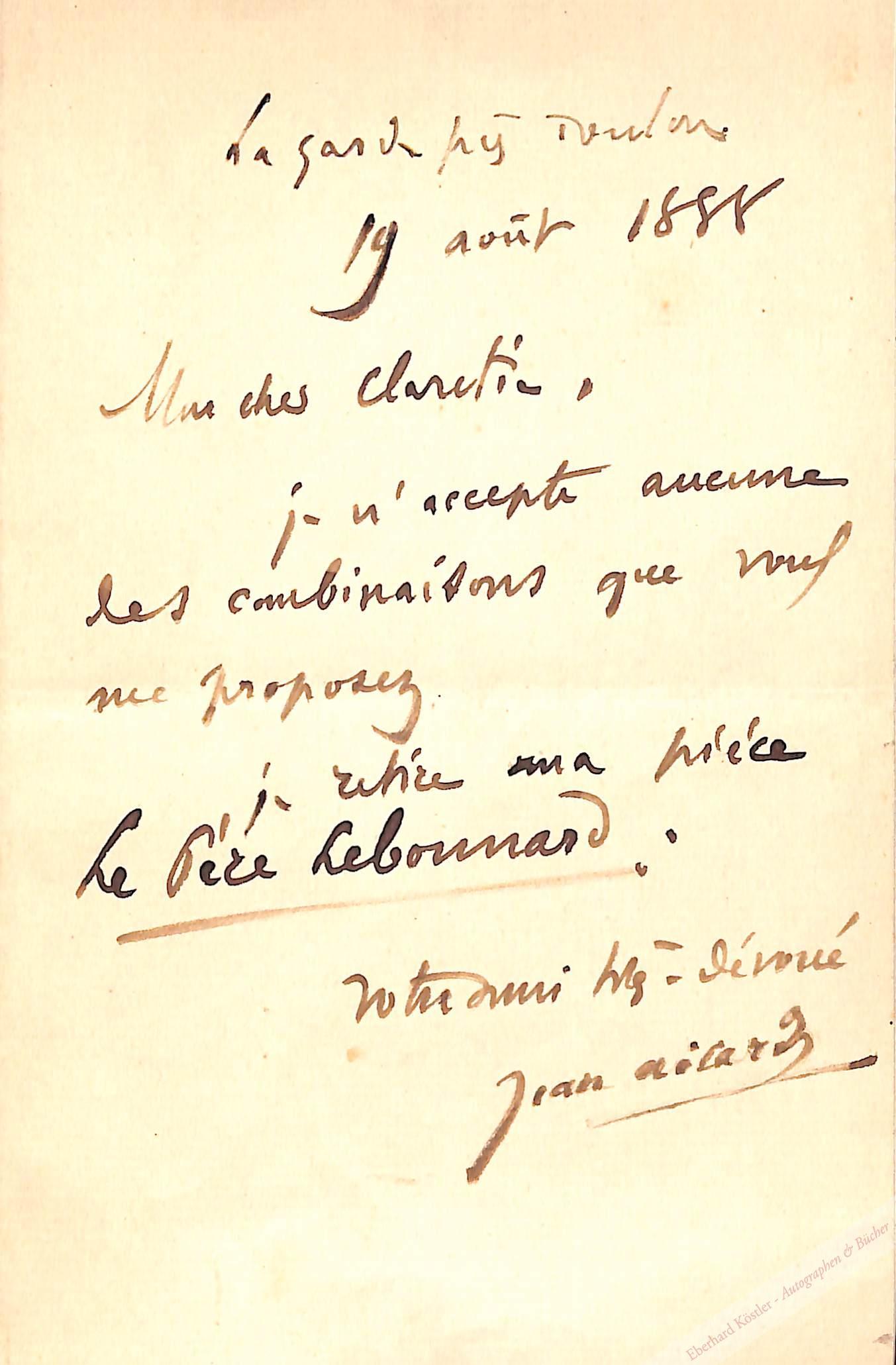 Bezüglich verschiedener Veröffentlichungen, darunter „Le Père Lebonnard“ (1889).