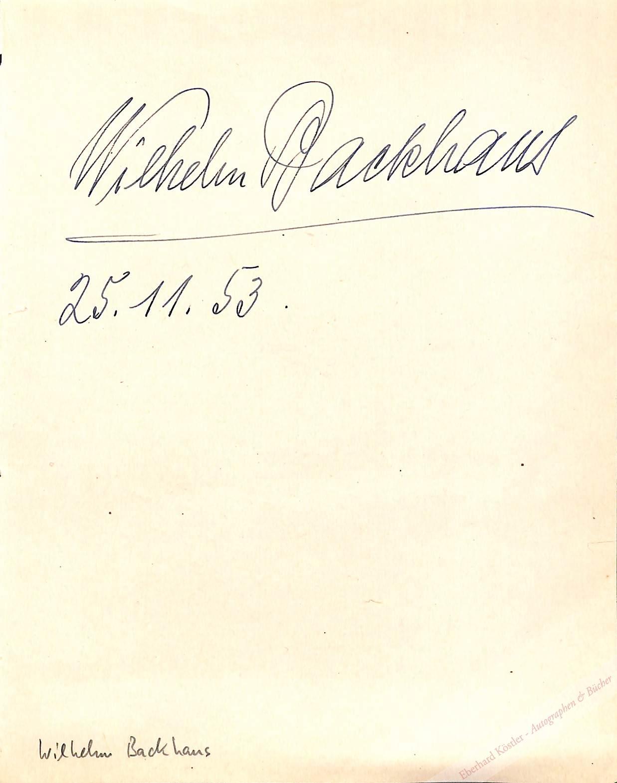 Backhaus, Wilhelm, Pianist (1884-1969).