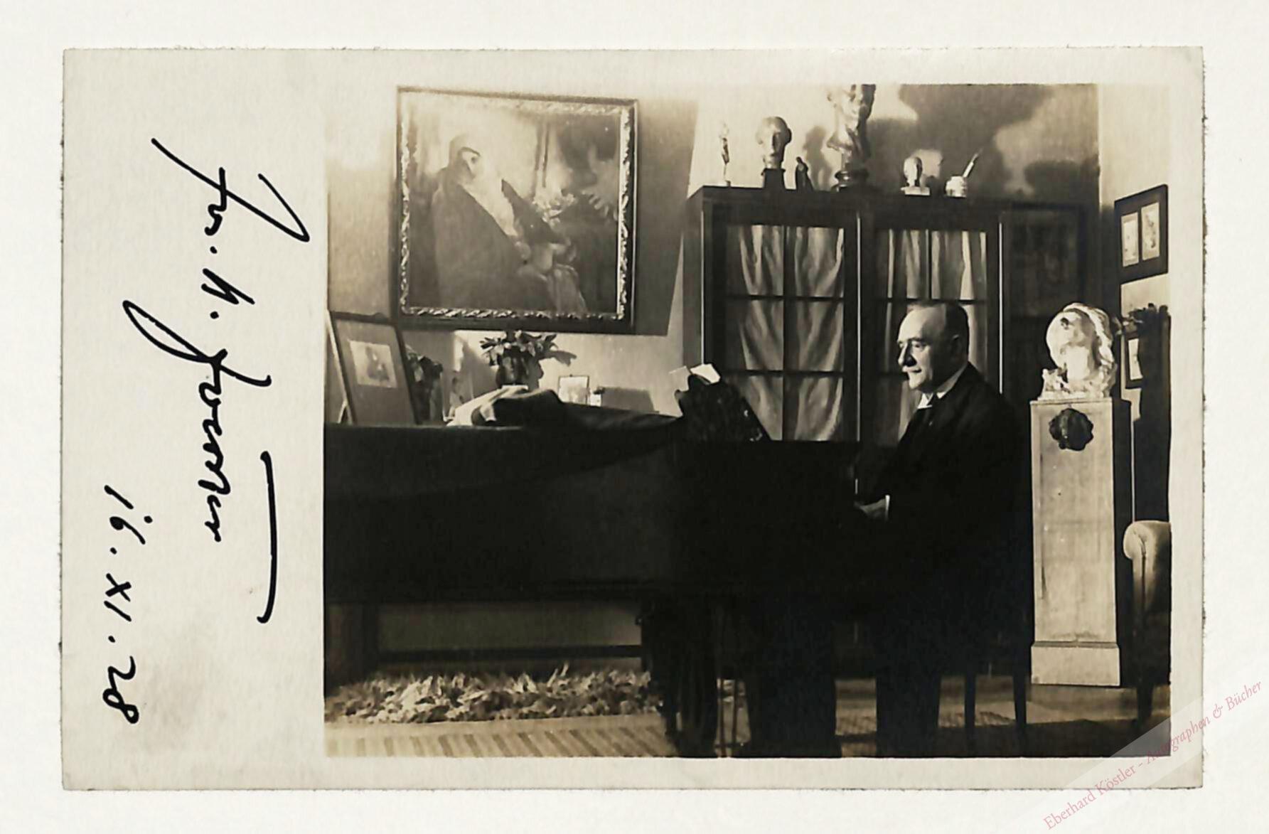 Foerster am Flügel. – Rückseitig Montagereste.