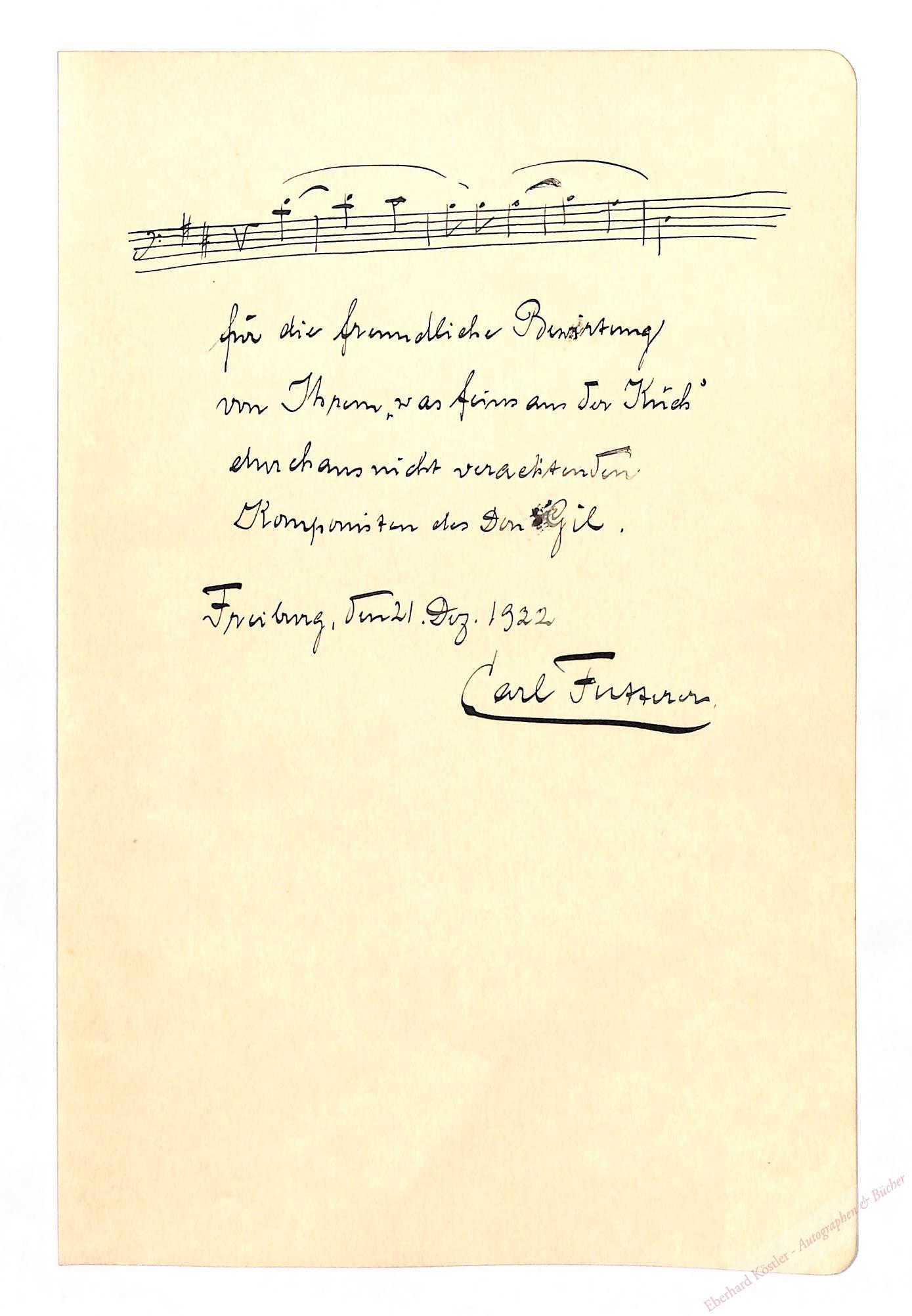 Eigenhändiges musikalisches Albumblatt mit Widmung und Unterschrift Freiburg, 1. XII. 1922, 8°. 1 Seite.