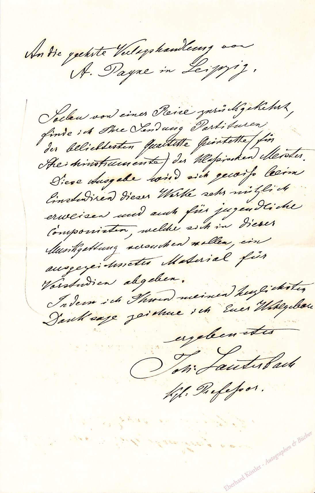 An den Verleger Payne in Leipzig wegen neuer Kammermusikausgaben.