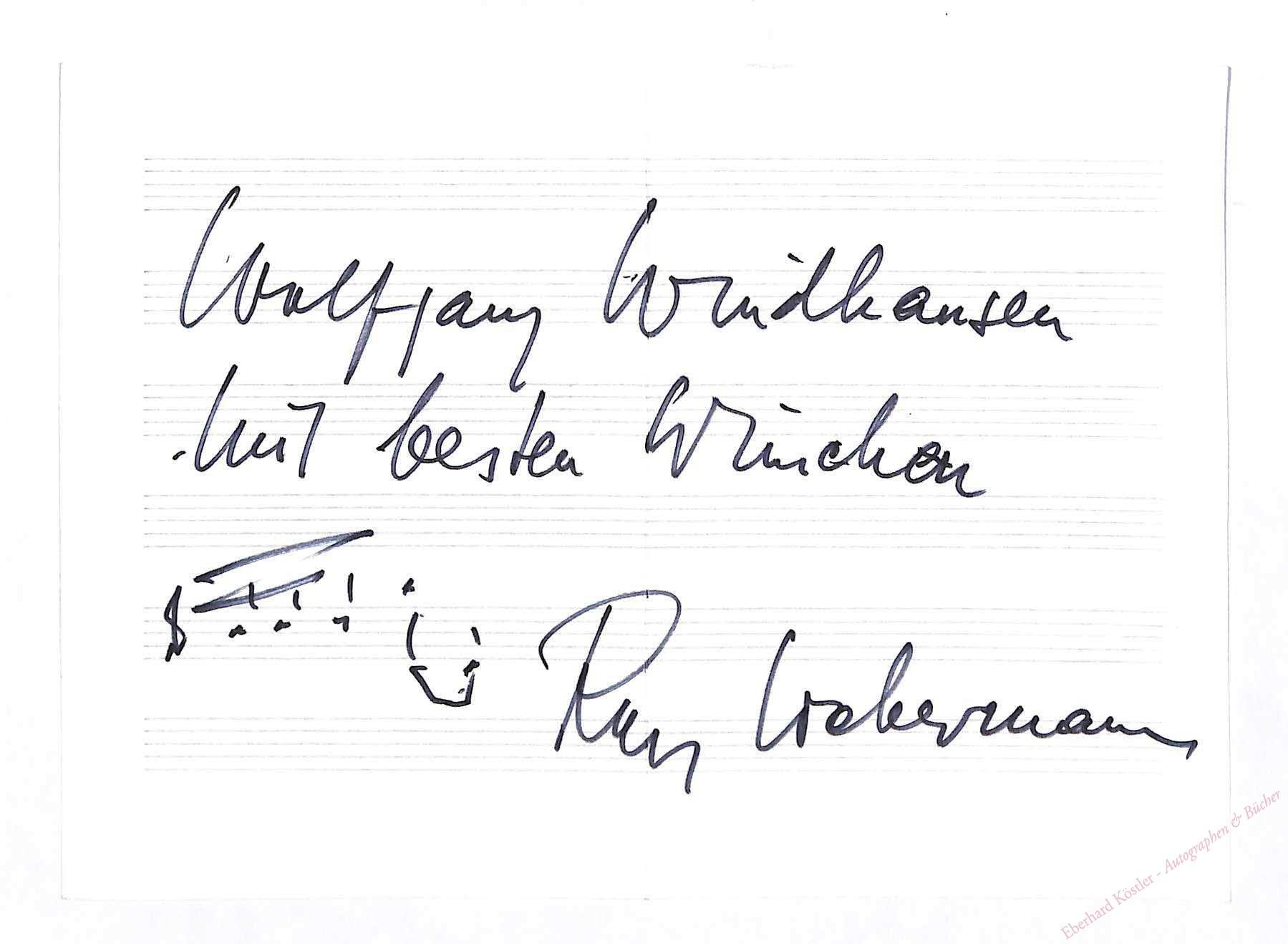 Eigenhändiges musikalisches Albumblatt mit Widmung und Unterschrift , Ohne Ort und Jahr, Qu.-4°. 1 Seite. – Mit Notenzitat.