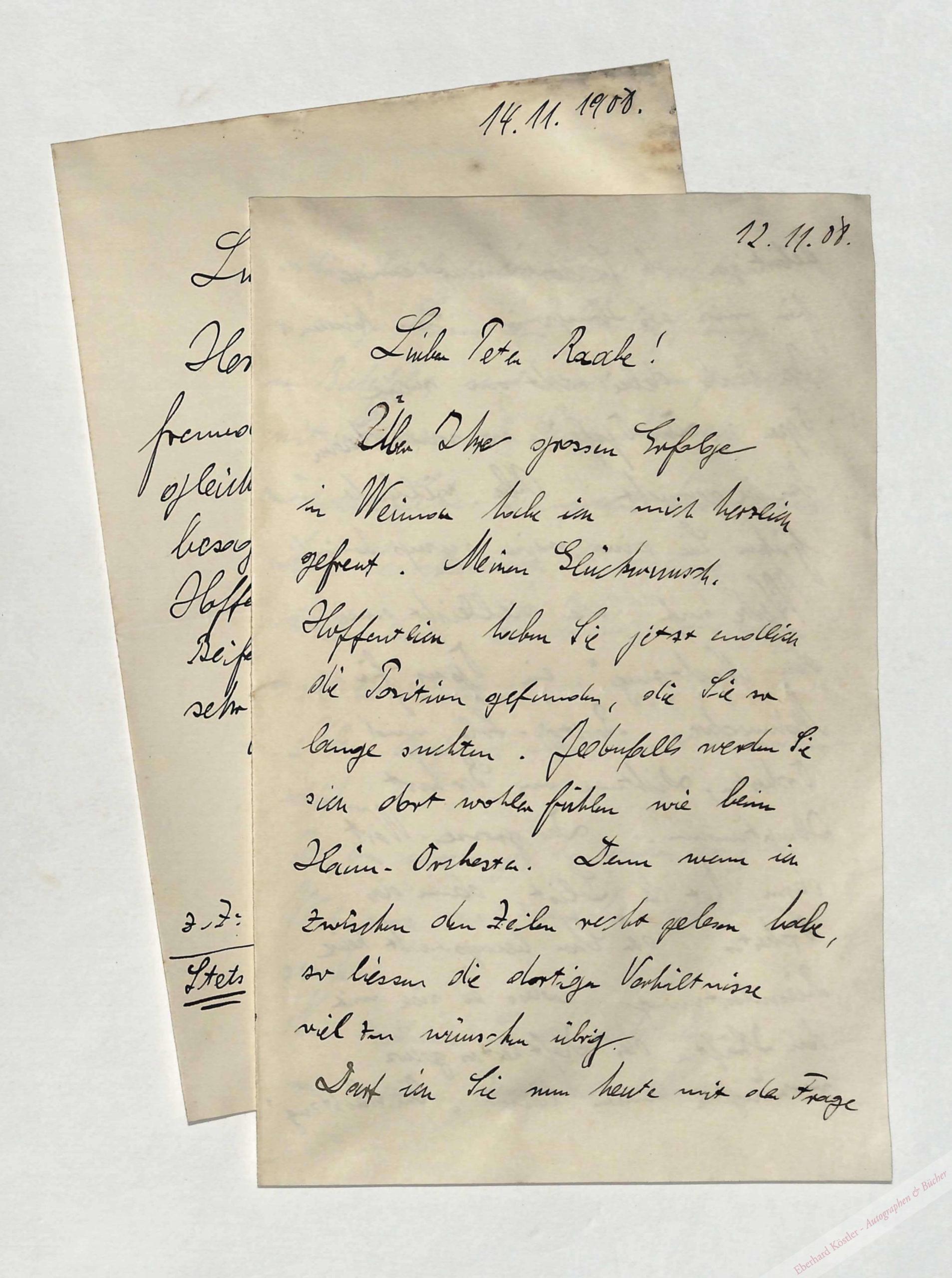 Über eigene Werke, besonders den „Nachtzug“, ein „Opus für Männerchor, Bariton-Solo und Orchester, Dichtung von Gerhart Hauptmann…“