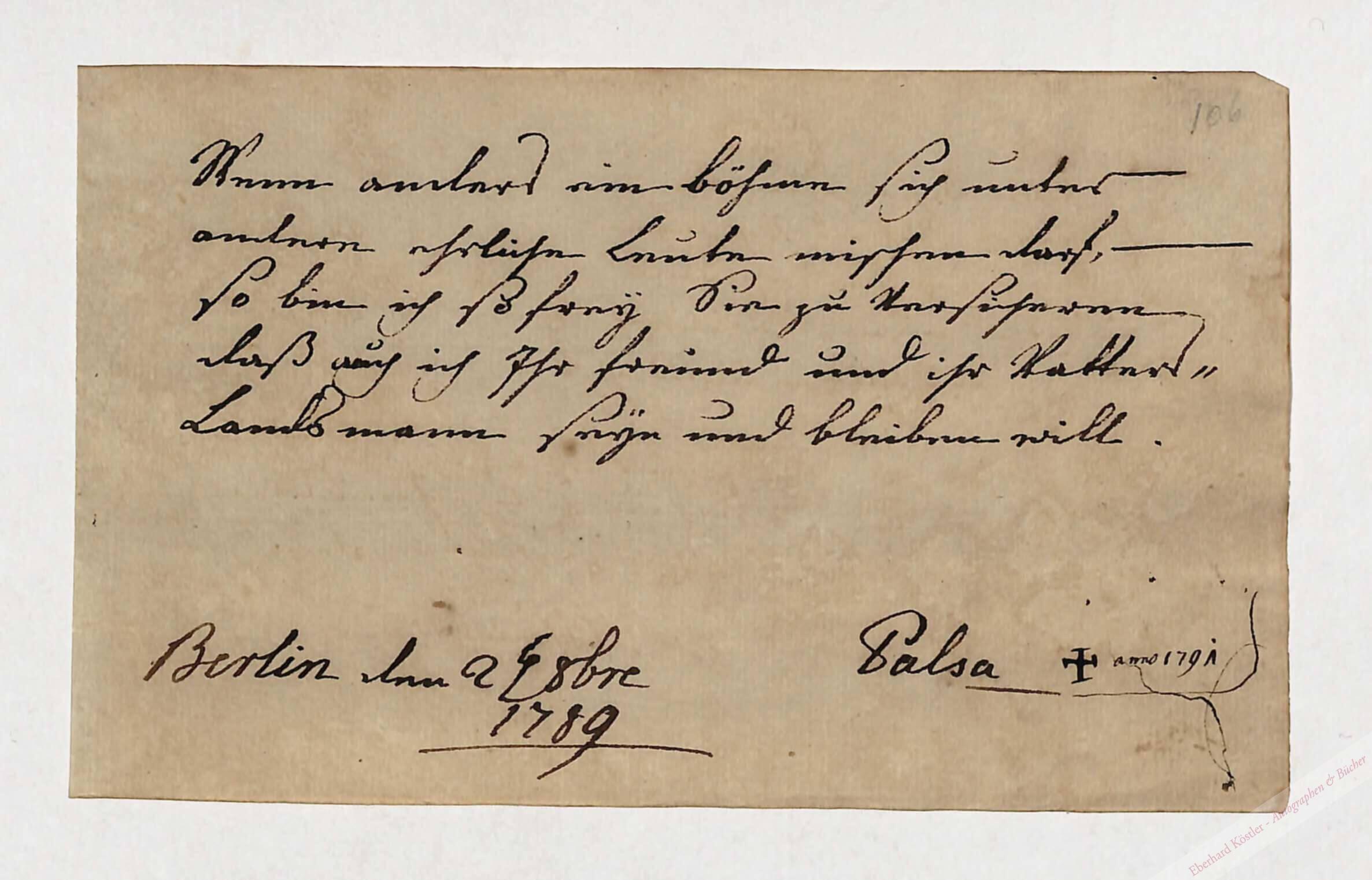„… so bin ich so frey Sie zu versichern daß auch ich Ihr Freund und ihr Vatterlandsmann seyn und bleiben will…“ – „Dieser große Künstler auf dem Primhorne“ (Gerber), war „Kammermusikus und Waldhornist der Opern-Kappelle zu Berlin“ (Ledebur S. 408).