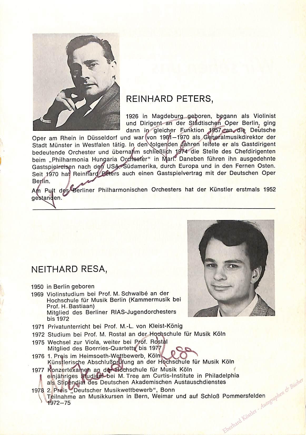 Signiertes Programm. Dazu Signatur von Neithard Resa. [Berlin], [1979], Qu.-8°. Doppelblatt. 1 Seite.