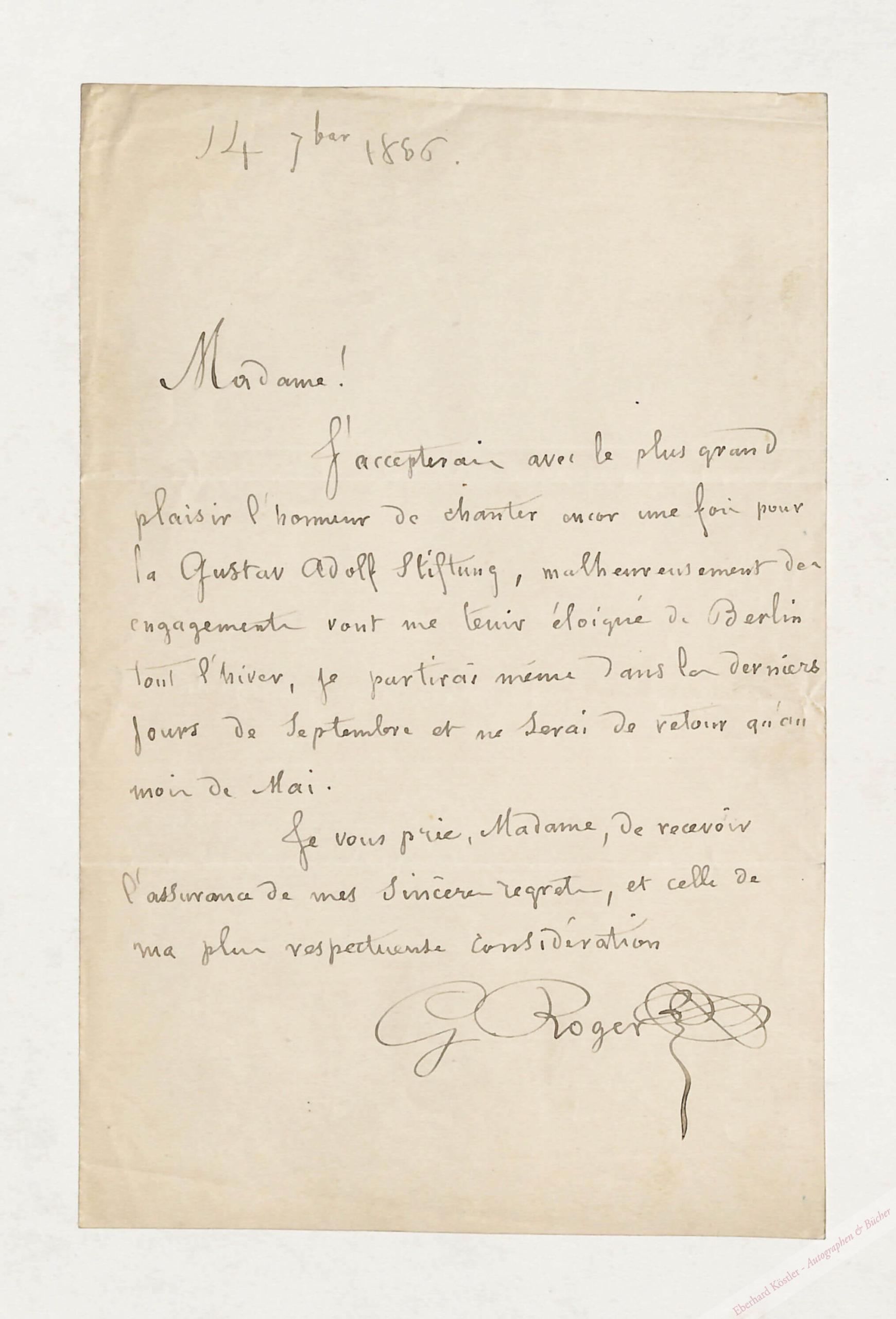 Bedauert, nicht für die Gustav-Adolf-Stiftung singen zu können, da er bis Mai von Berlin abwesend ist.