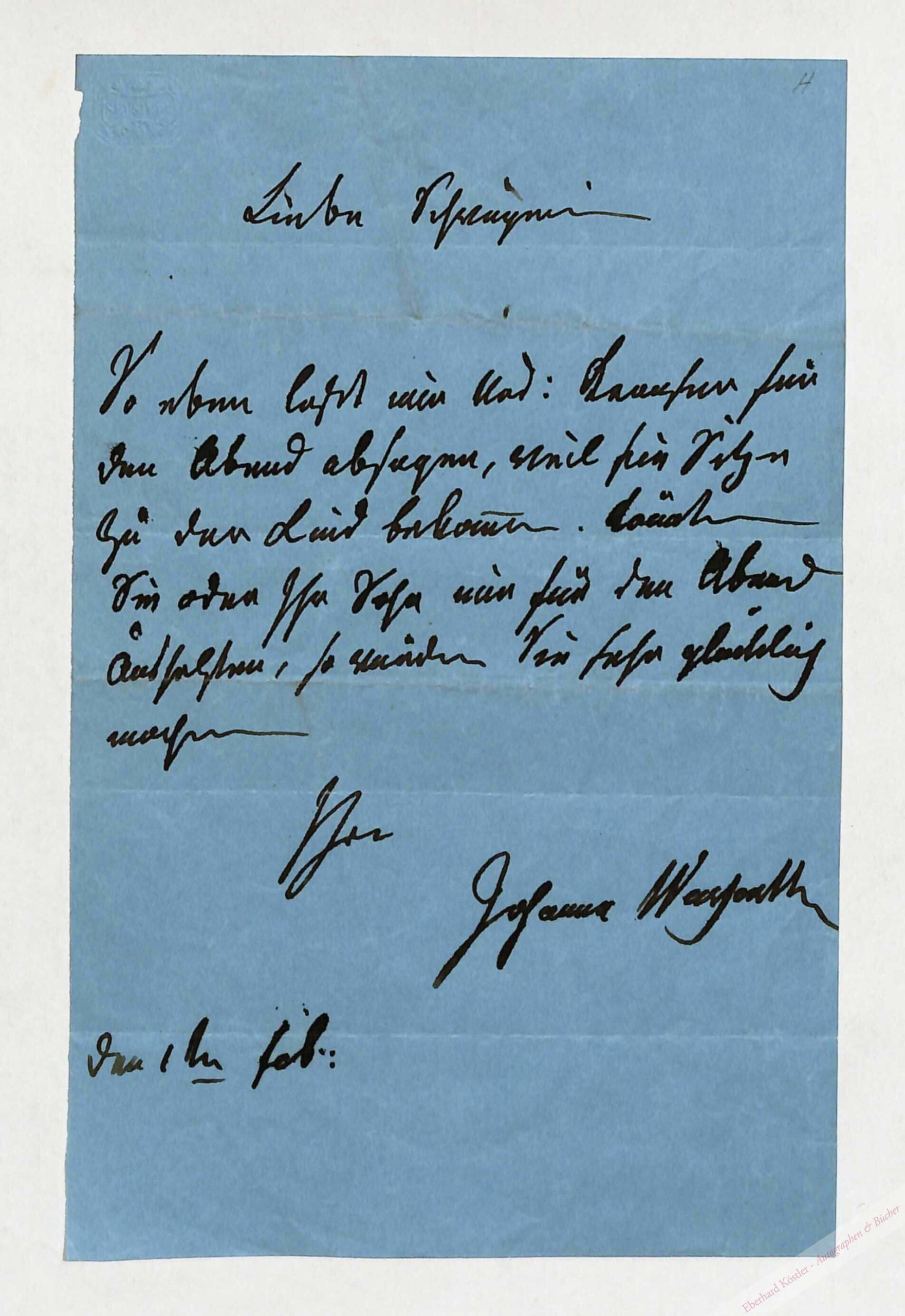 Einladung der bedeutenden Schauspielerin an ihre Schwägerin. Napoléon war von ihr so entzückt, als er sie als „Phädra“ im Schönbrunner Schloßtheater sah, daß er ihr eine Schatulle mit 3000 frcs. überreichen ließ.