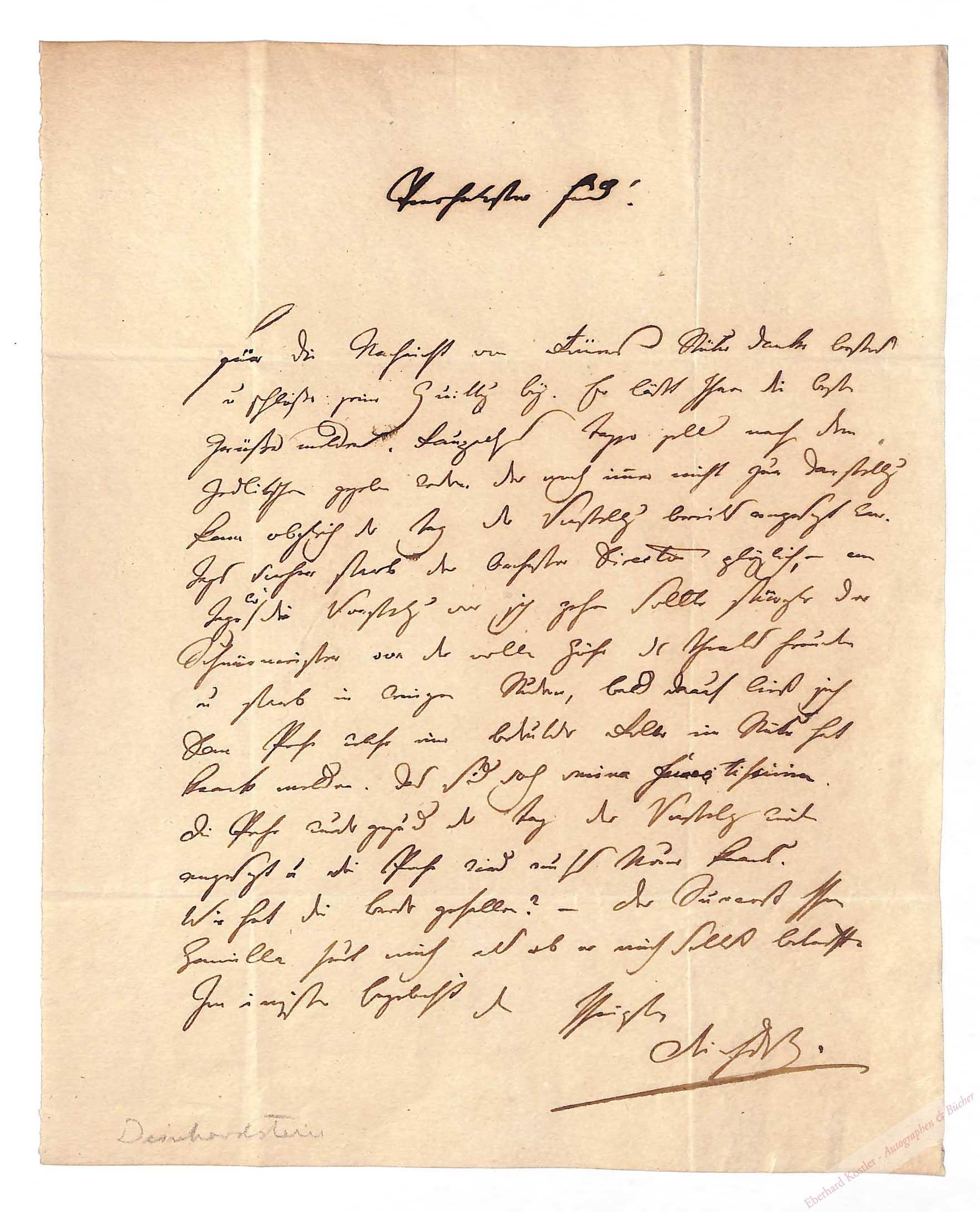 An einen Freund über die geplante Aufführung eines Stückes, die nicht zu Stande kam: „[…] am Tage wo die Vorstellung vor sich gehen sollte stürzte der Schnürmeister von der vollen Höhe des Theaters herunter und starb in wenigen Stunden […]“ – Tragisch.