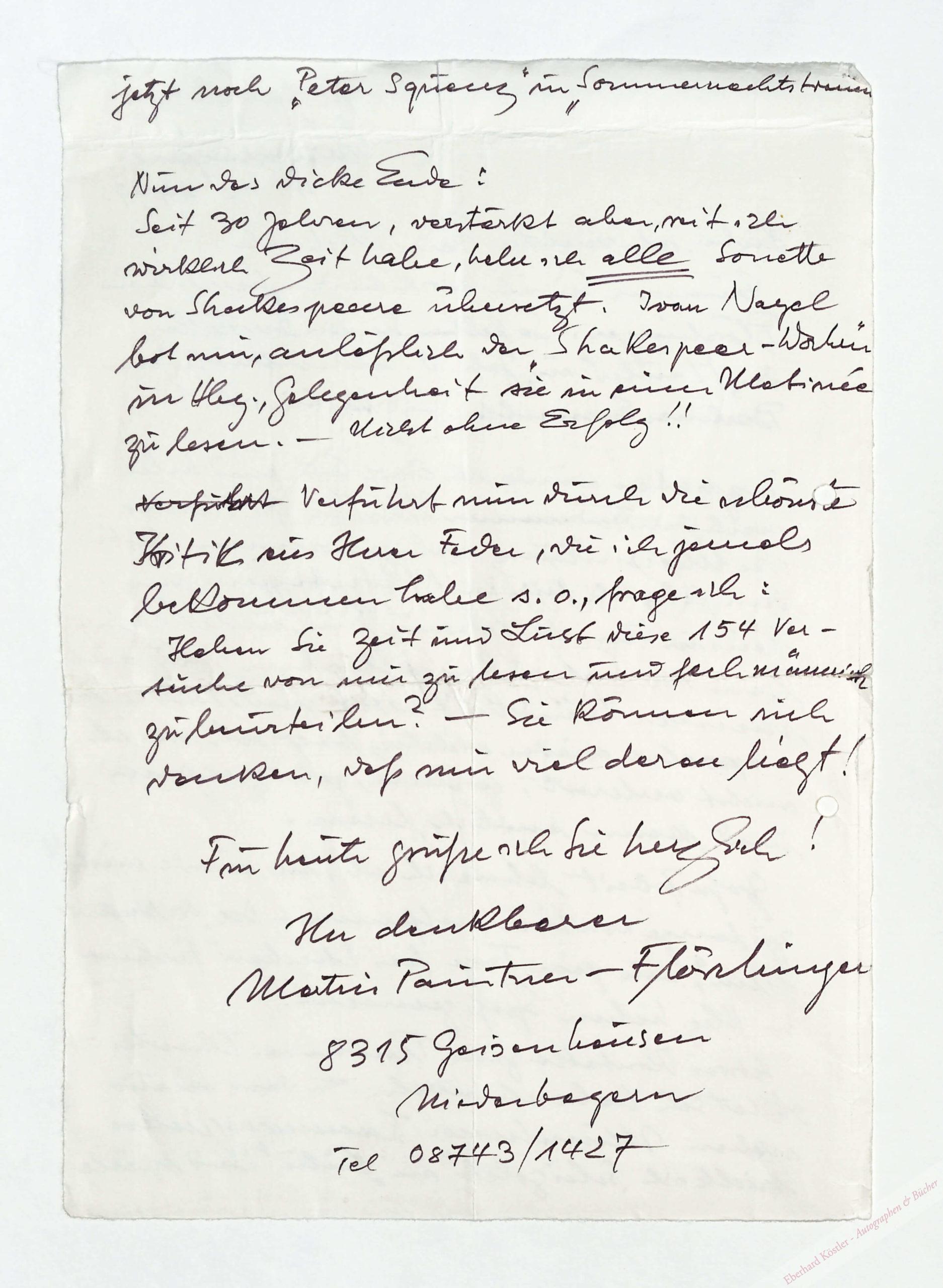 An Rolf Michaelis über seine Arbeit als Schauspieler und seine Übersetzung von Shakespeare-Sonetten. – 1953 engagierte ihn Wolfgang Langhoff an das Deutsche Theater in Berlin, wo er ab 1956 am Berliner Ensemble spielte. – Randschäden.
