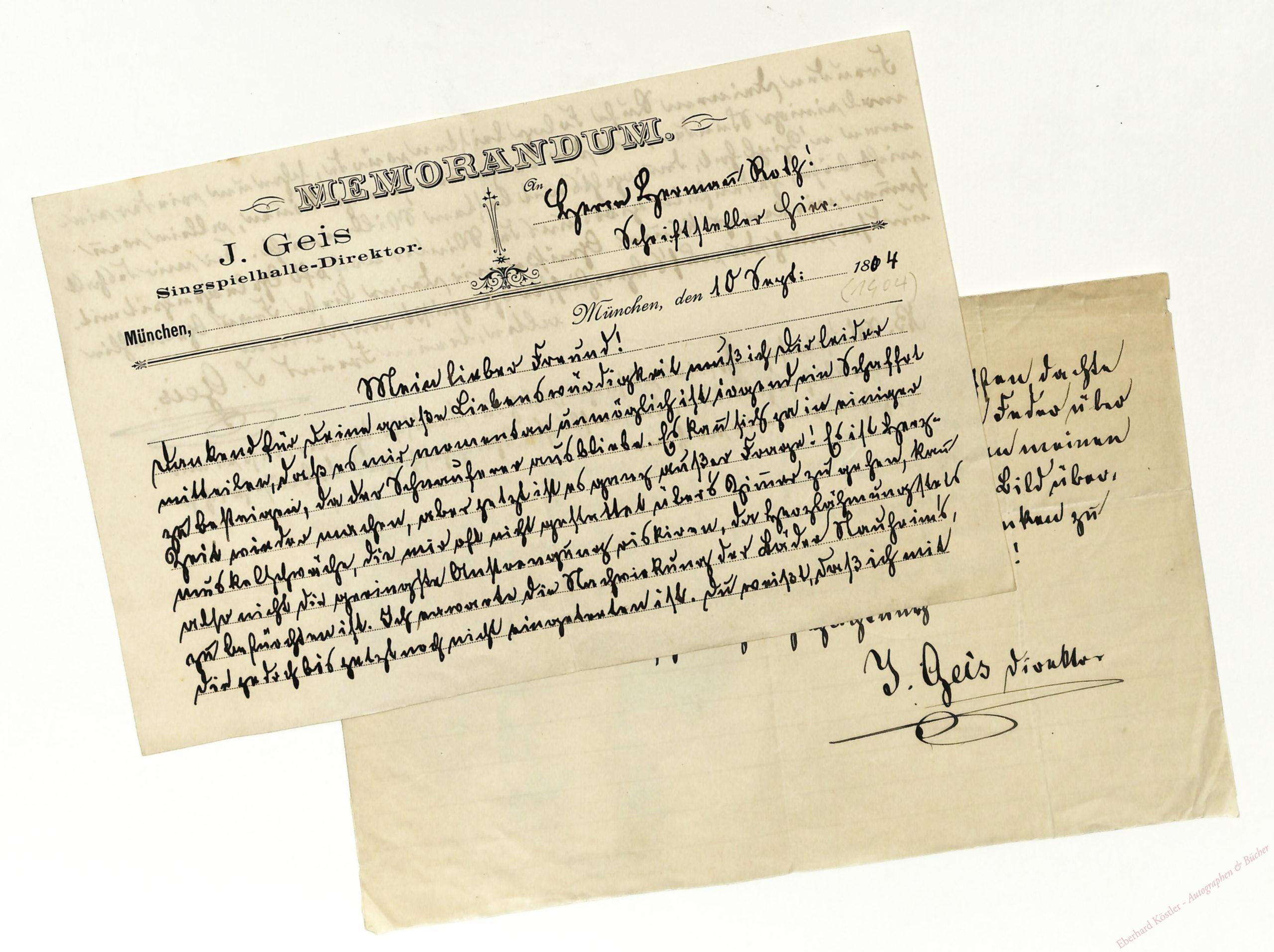 2 eigenhändige Briefe [einer mit Porträtholzstich] mit Unterschrift München, 10. IX. 1904 bzw. ohne Jahr, Verschied. Formate. Zus. ca. 3 Seiten.
