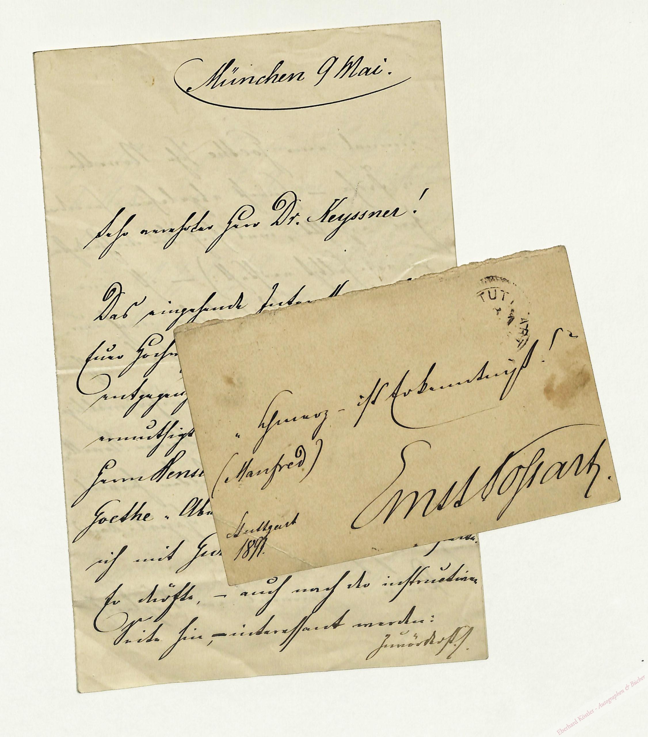 An den Verleger Gustav Keyssner mit Dank für das Interesse an seinem Heine-Abend und mit dem Angebot eines Goethe-Abends mit Eugen Gura, dessen einzelne Programmpunkte er näher erläutert. – Einriss. – Beiliegend ein eigenh. Albumblatt mit U.