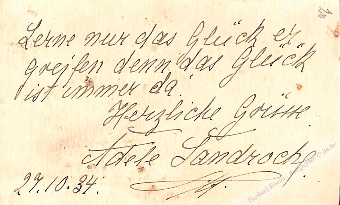 „Lerne nur das Glück ergreifen, denn das Glück ist immer da …“ – Umseitig montierte Porträtfotografie.