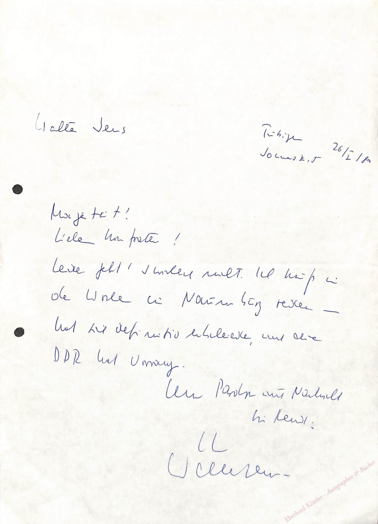 „Leider geht’s wirklich nicht. Ich muß in der Woche in Naumburg reden – hat sich definitiv entschieden und die DDR hat Vorrang …“