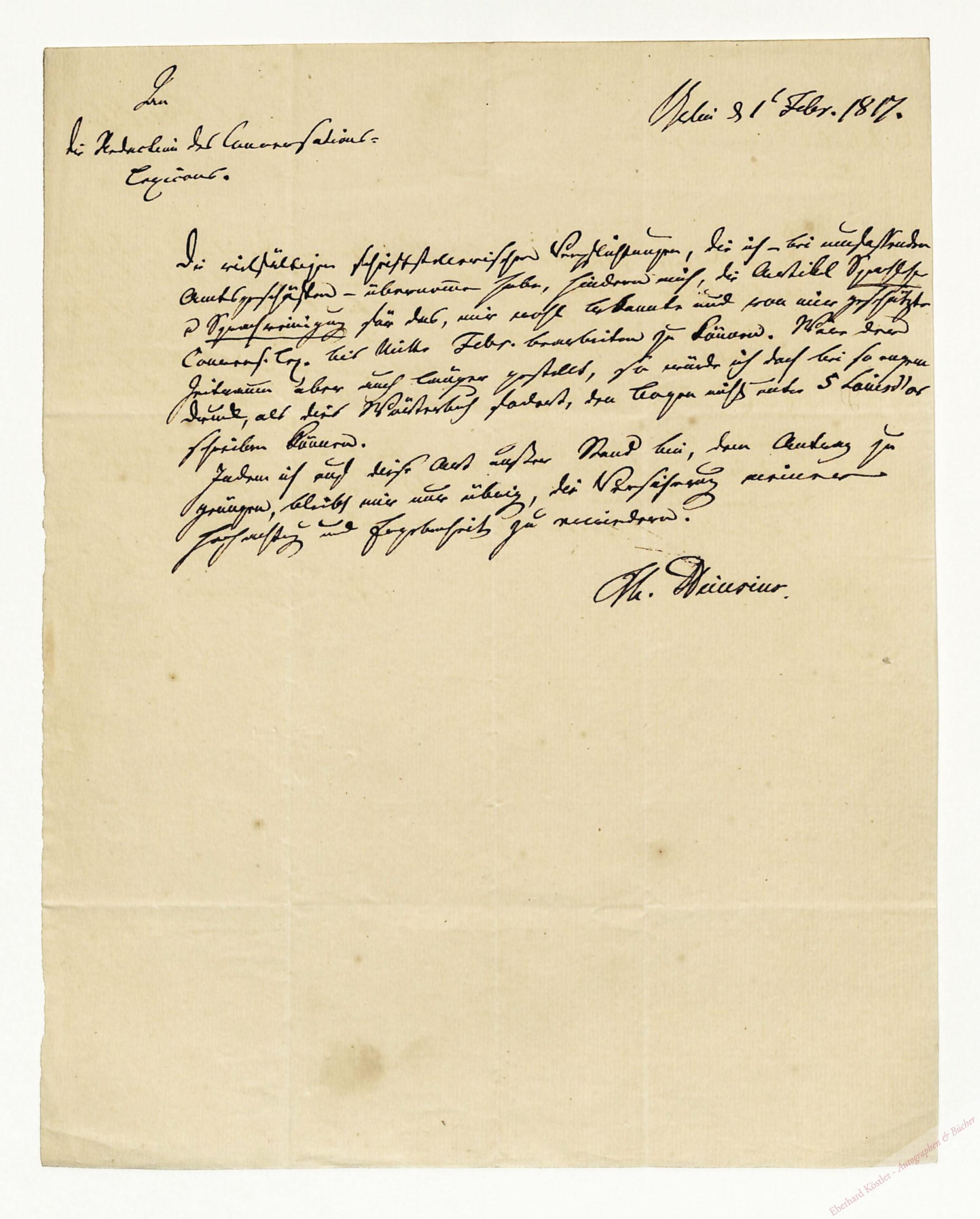 An den Verlag Brockhaus in Leipzig: „[…] Die vielfältigen schriftstellerischen Verpflichtungen, die ich – bei umfassenden Amtsgeschäften – übernommen habe, hindern mich, die Artikel Sprachlehre und Sprachreinigung für das, mir wohl bekannte und von mir geschätzte Convers. Lex. bis Mitte Febr. bearbeiten zu können. Wäre der Zeitraum aber auch länger gestellt, so würde ich doch bei so engem Druck, als dies Wörterbuch fordert, den Bogen nicht unter 5 Louisd’or schreiben können […]“ – Heinsius ist der Hauptverstreter der deutschen Sprachlehre zwischen Adelung und den Brüdern Grimm. Gemeinsam mit Johann August Zeune und Friedrich Ludwig Jahn begründete er 1814 die „Berlinische Gesellschaft für Deutsche Sprache“.